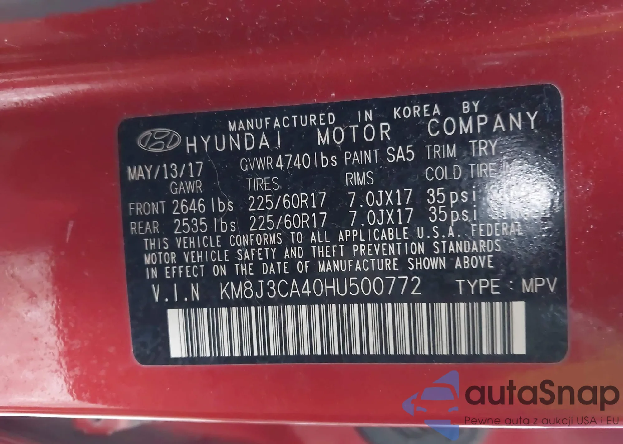 • VIN KM8J3CA40HU500772