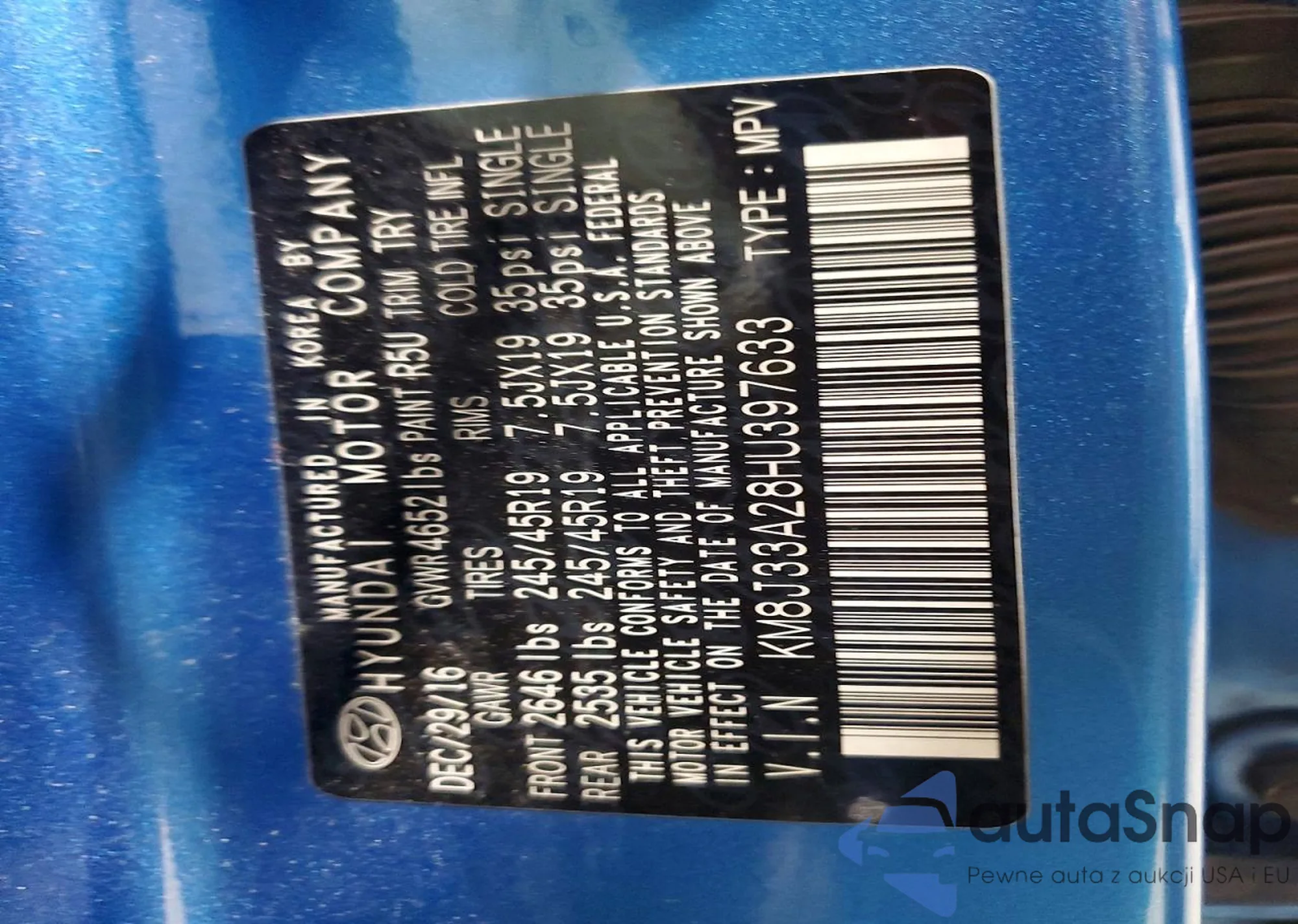 • VIN KM8J33A28HU397633