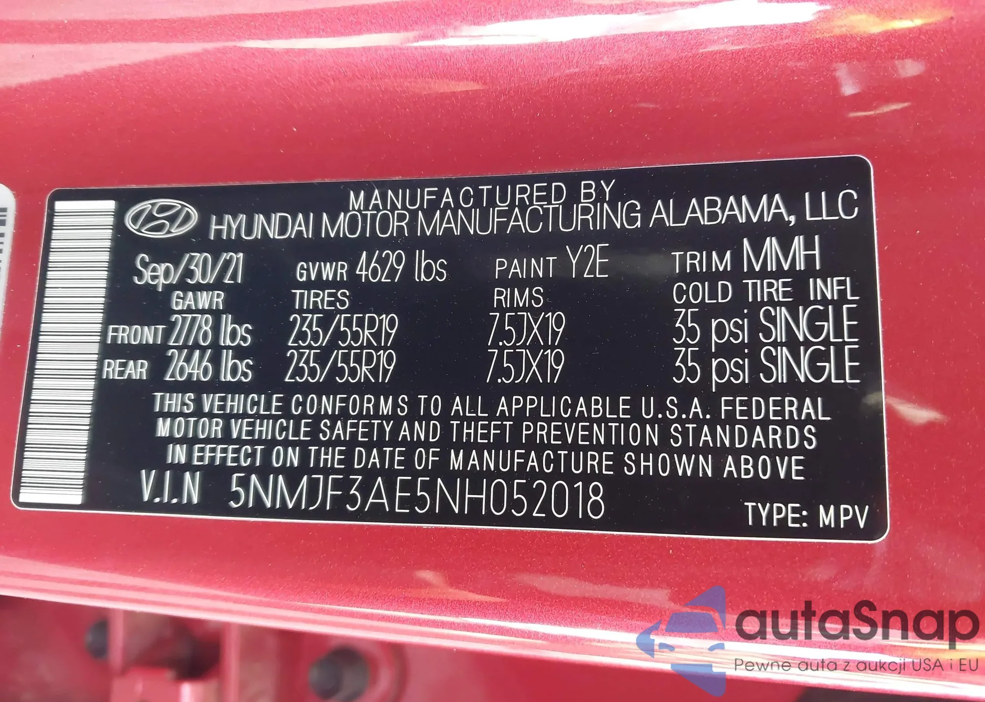 • VIN 5NMJF3AE5NH052018