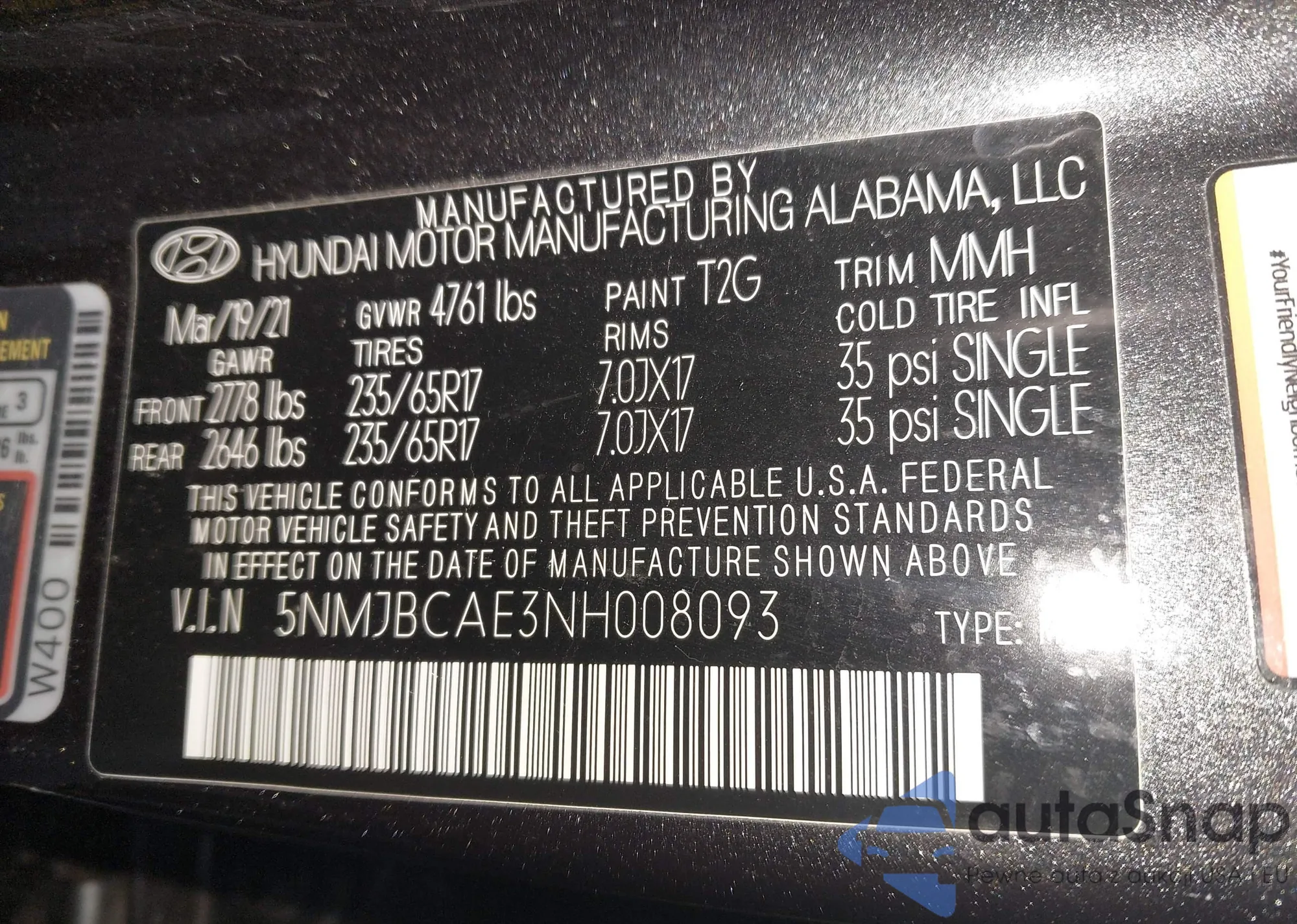 • VIN 5NMJECAE8NH105409