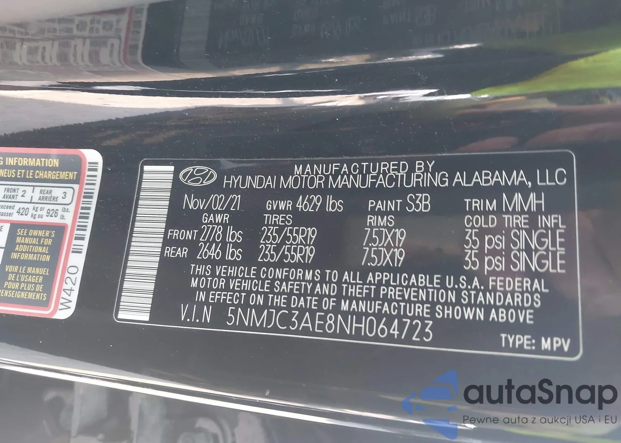 • VIN 5NMJC3AE3NH042869