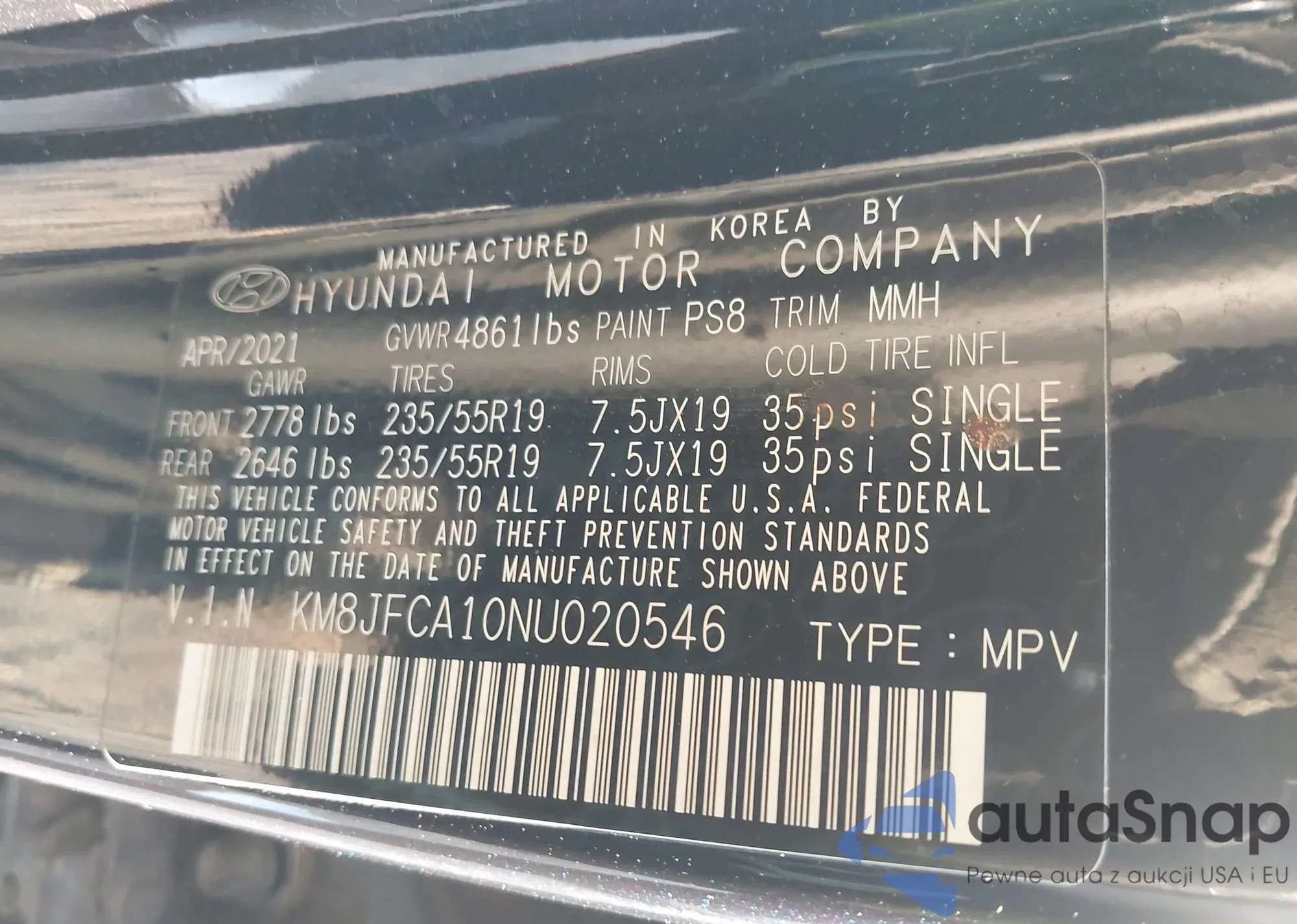 • VIN 5NMJA3AE6NH020418
