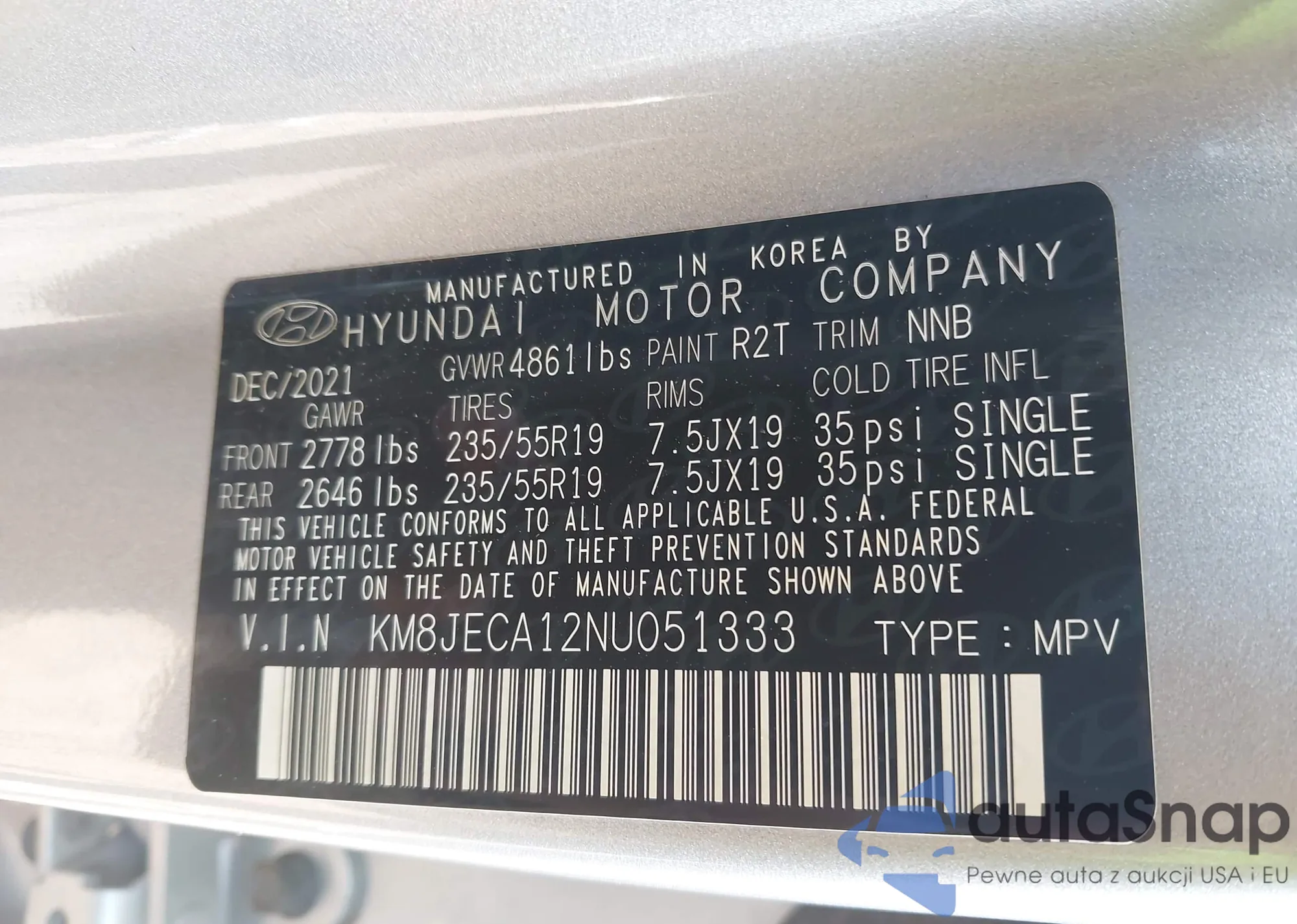 LOT: 44510686 VIN: KM8JECA12NU051333