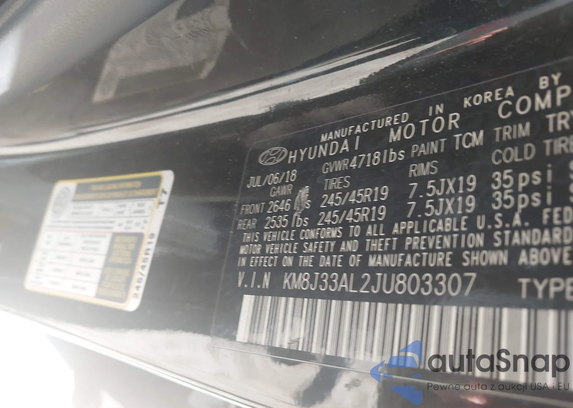 • VIN KM8J33AL2JU803307