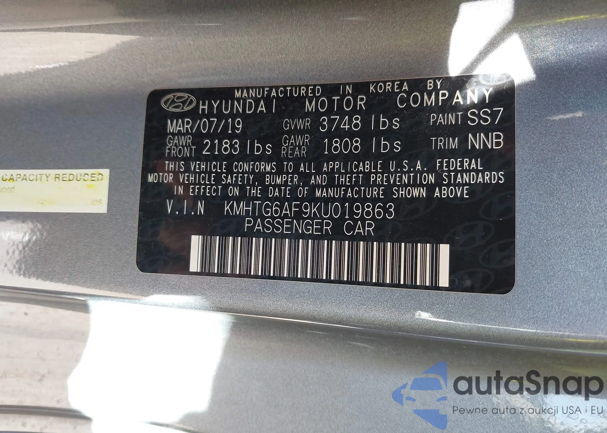 LOT: 43849870 VIN: KMHTG6AF9KU019863