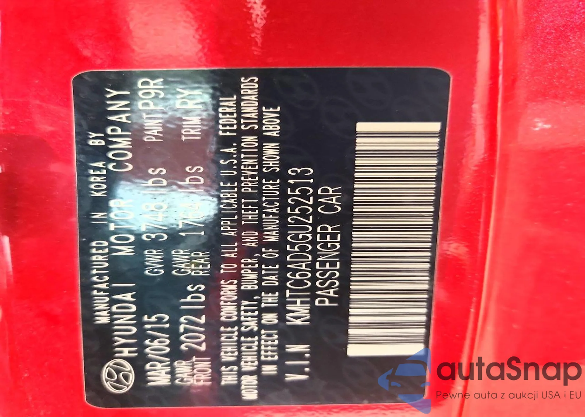 • VIN KMHTC6AE9GU249946