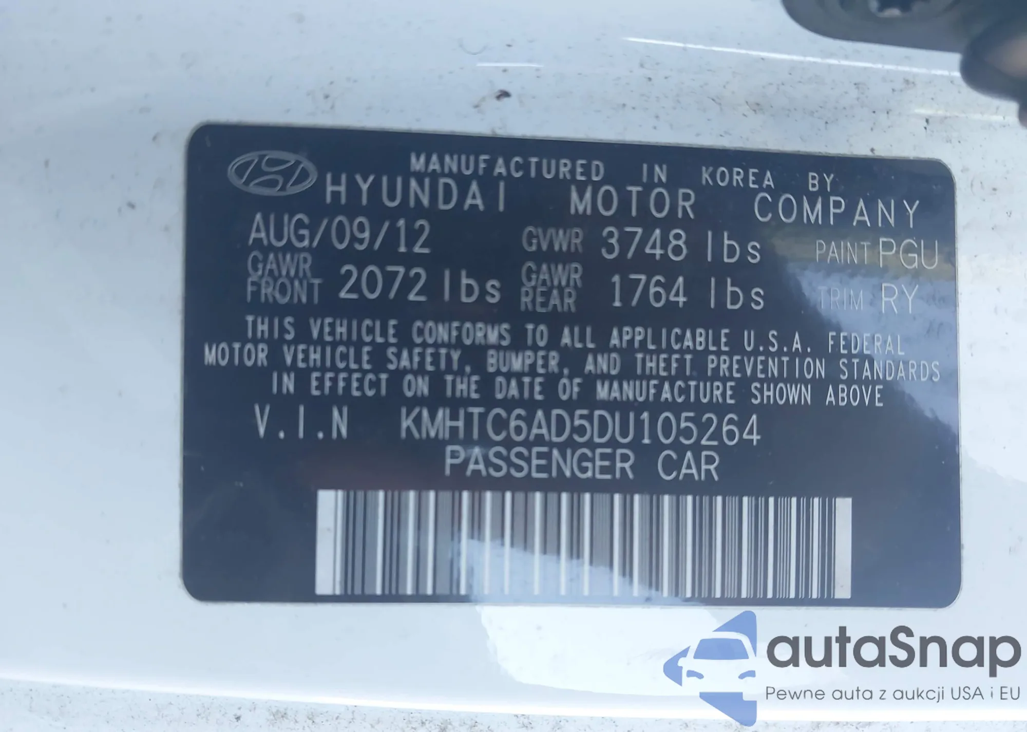 • VIN KMHTC6AD5DU105264