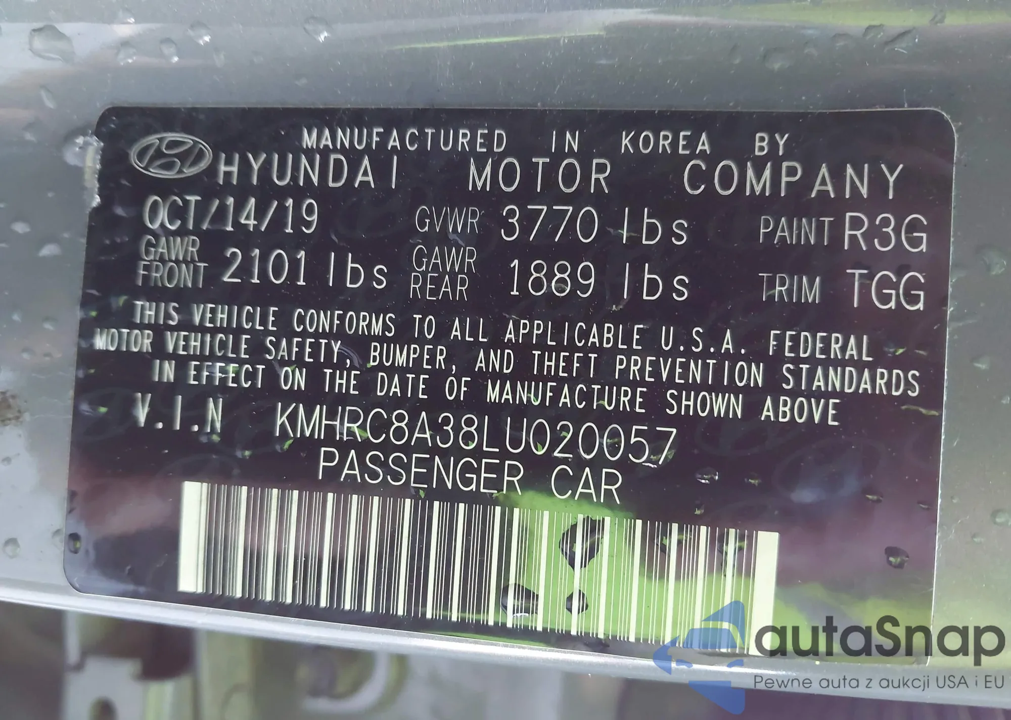 LOT: 43948937 VIN: KMHRC8A38LU020057