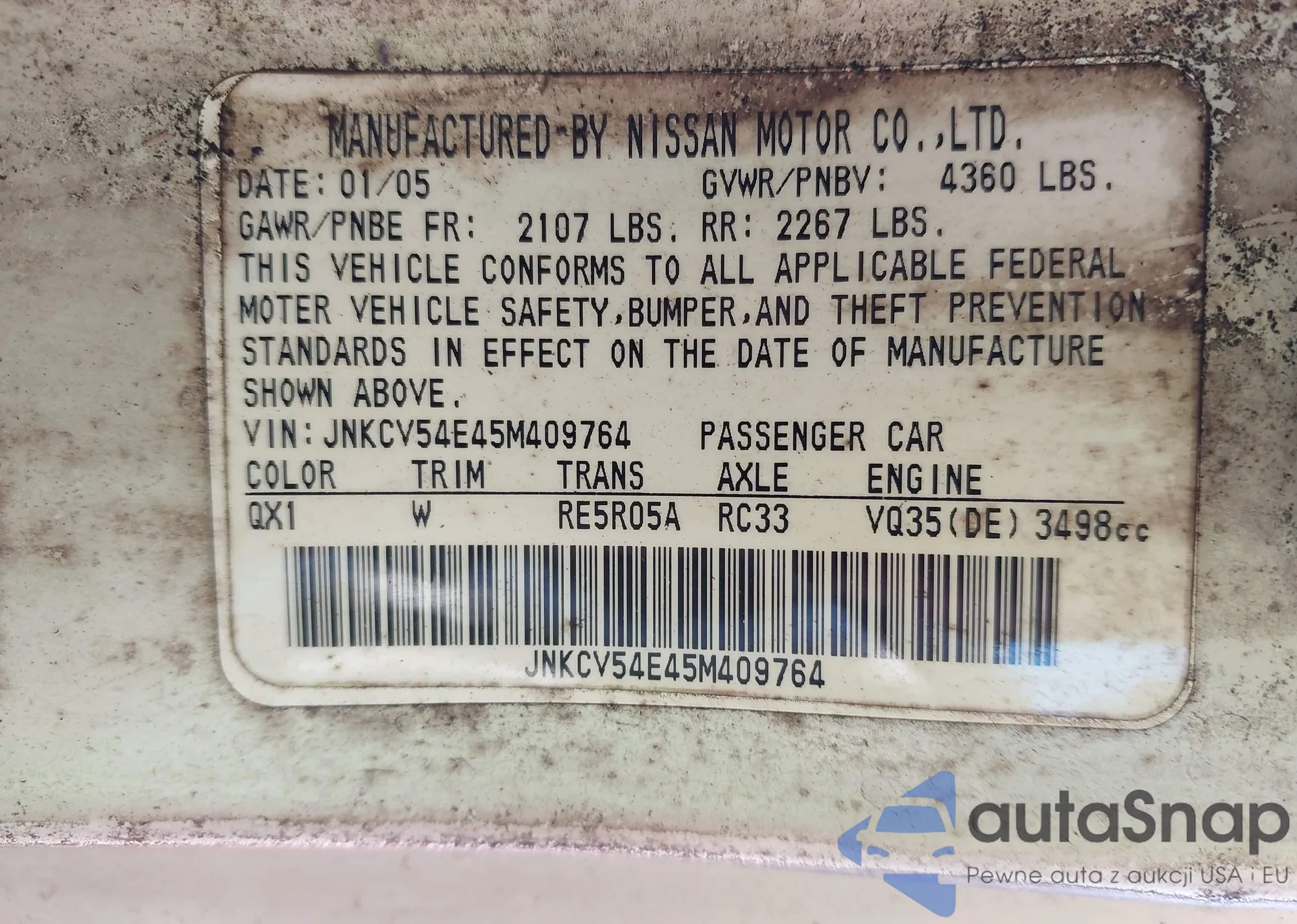 2005 Infiniti G35 from USA, damaged, VIN JNKCV51EX5M223649