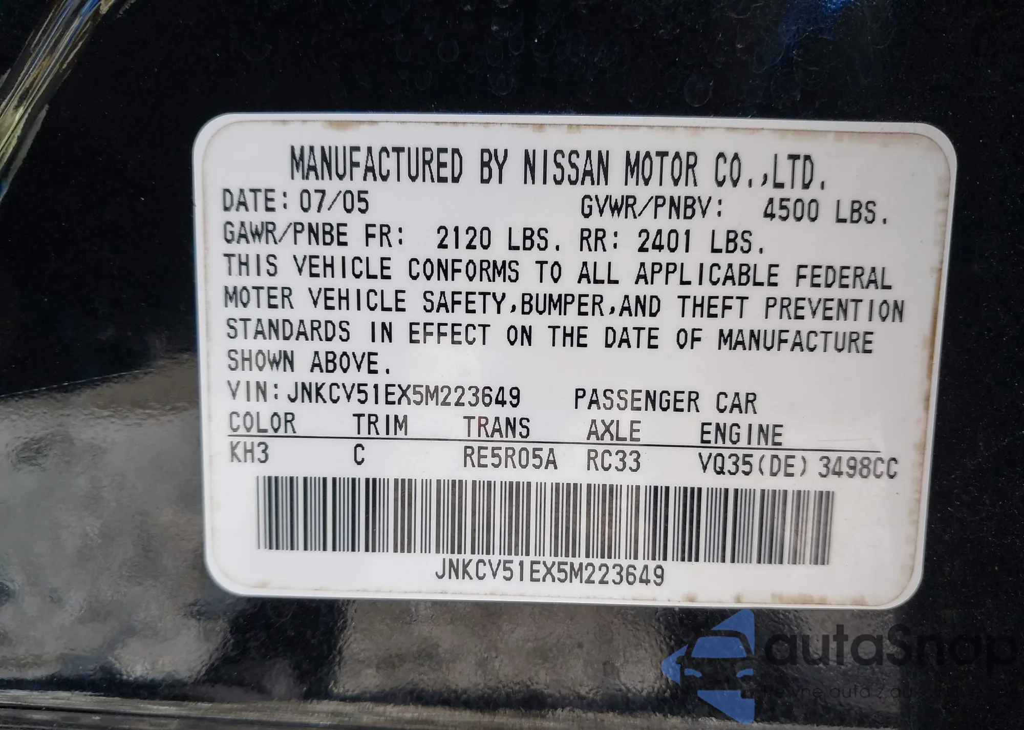 • VIN JNKCV51EX5M223649