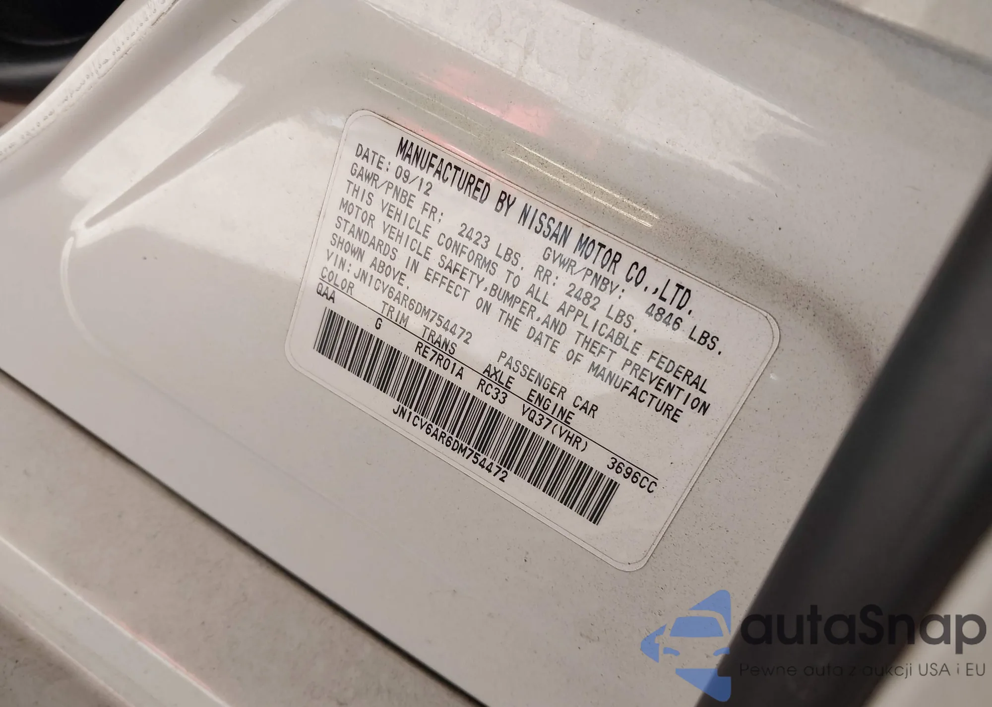 LOT: 44055890 VIN: JN1CV6AR6DM754472