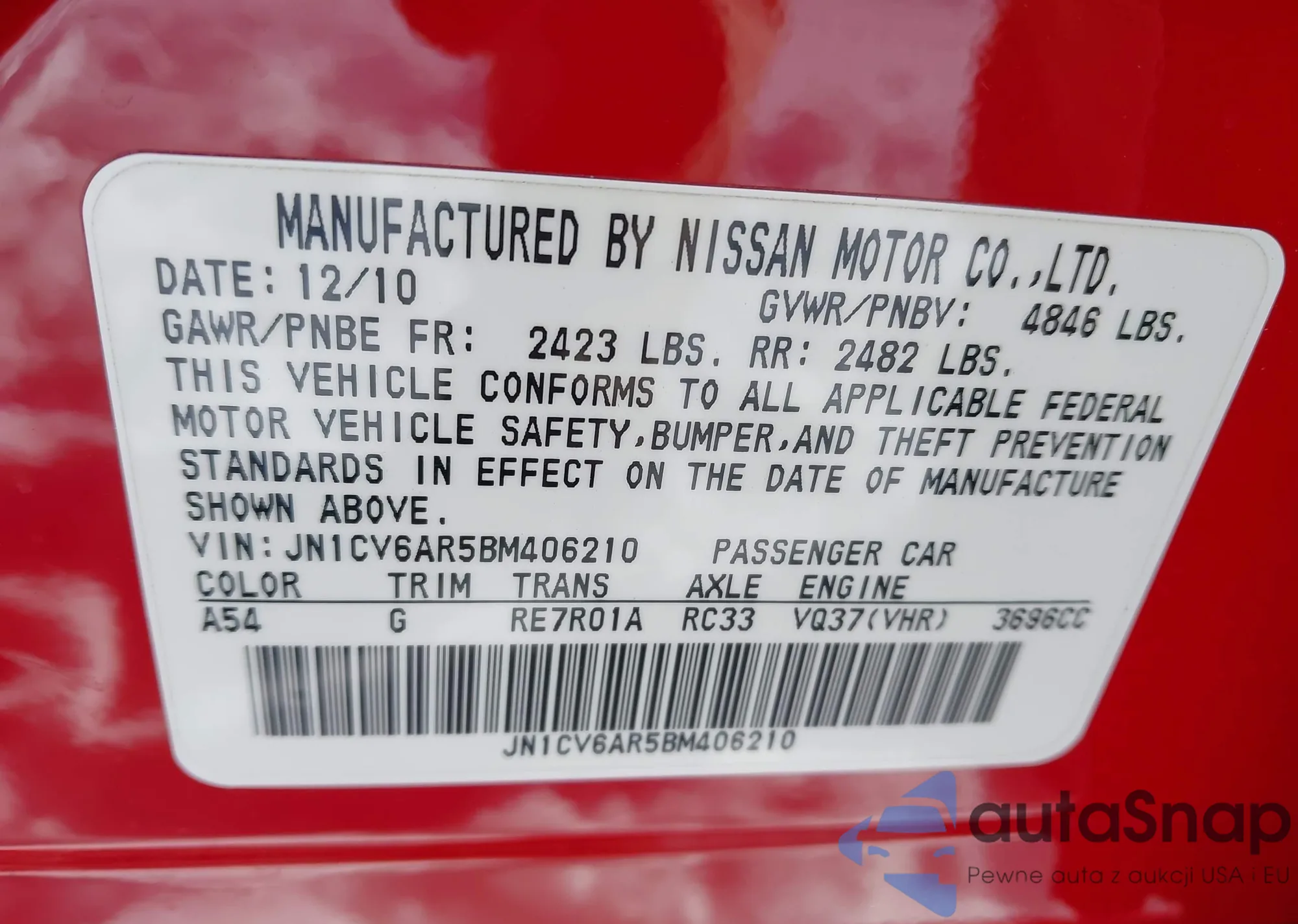 • VIN JN1CV6AR5BM406210