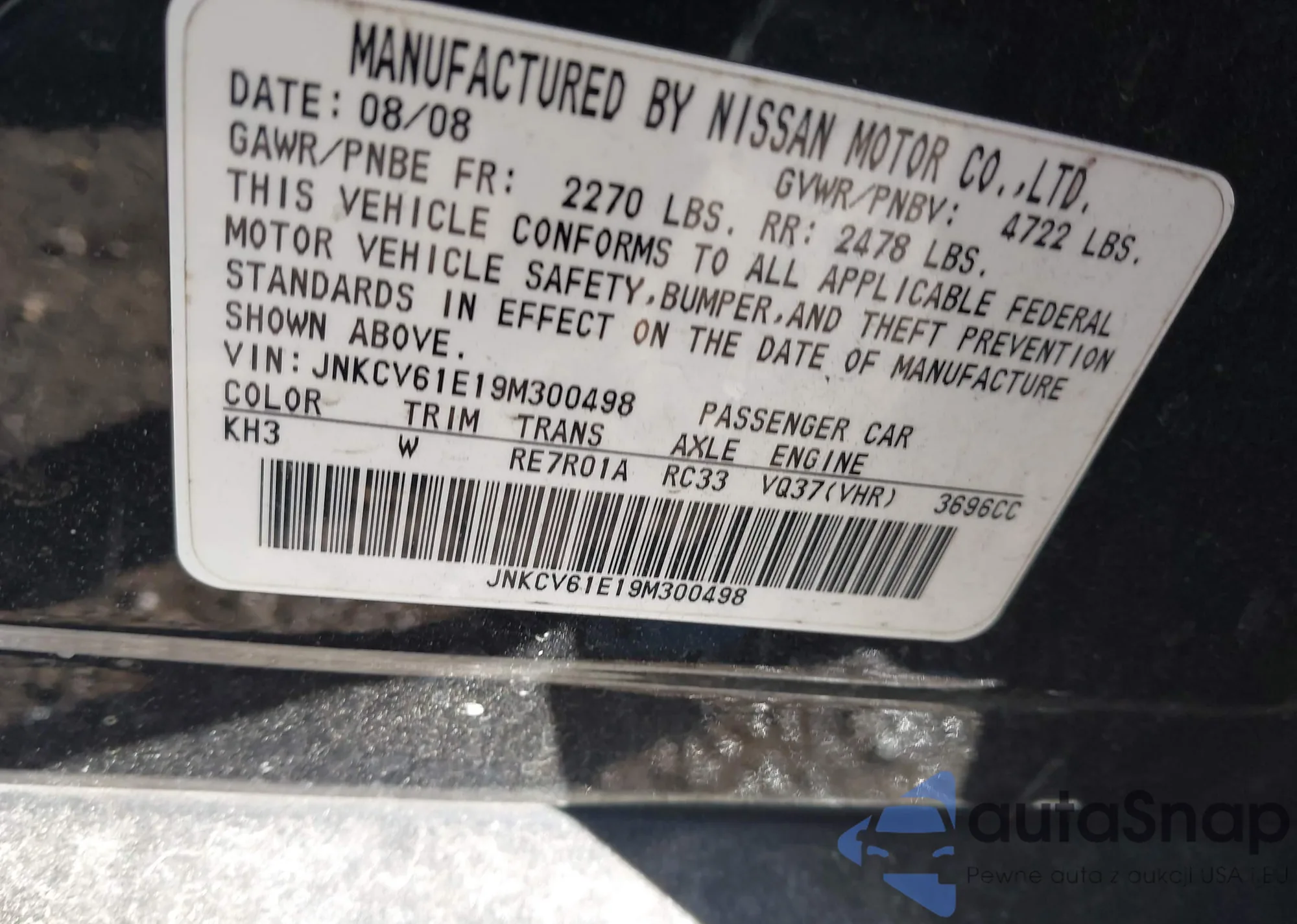 LOT: 44290465 VIN: JNKBV61E48M211826