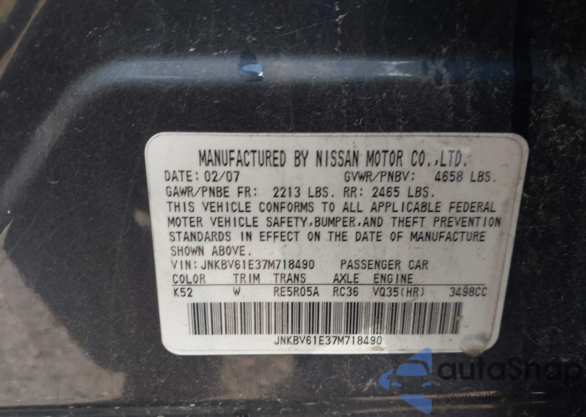 LOT: 44564436 VIN: JNKBV61E37M718490
