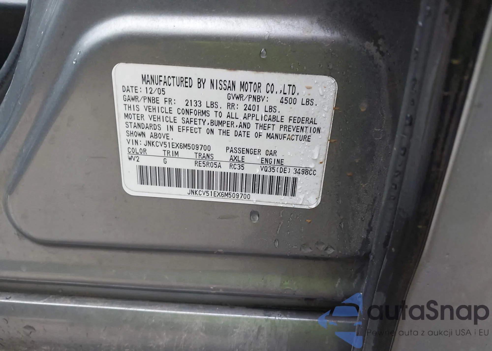 2006 Infiniti G35 from USA, damaged, VIN JNKCV51EX6M509700