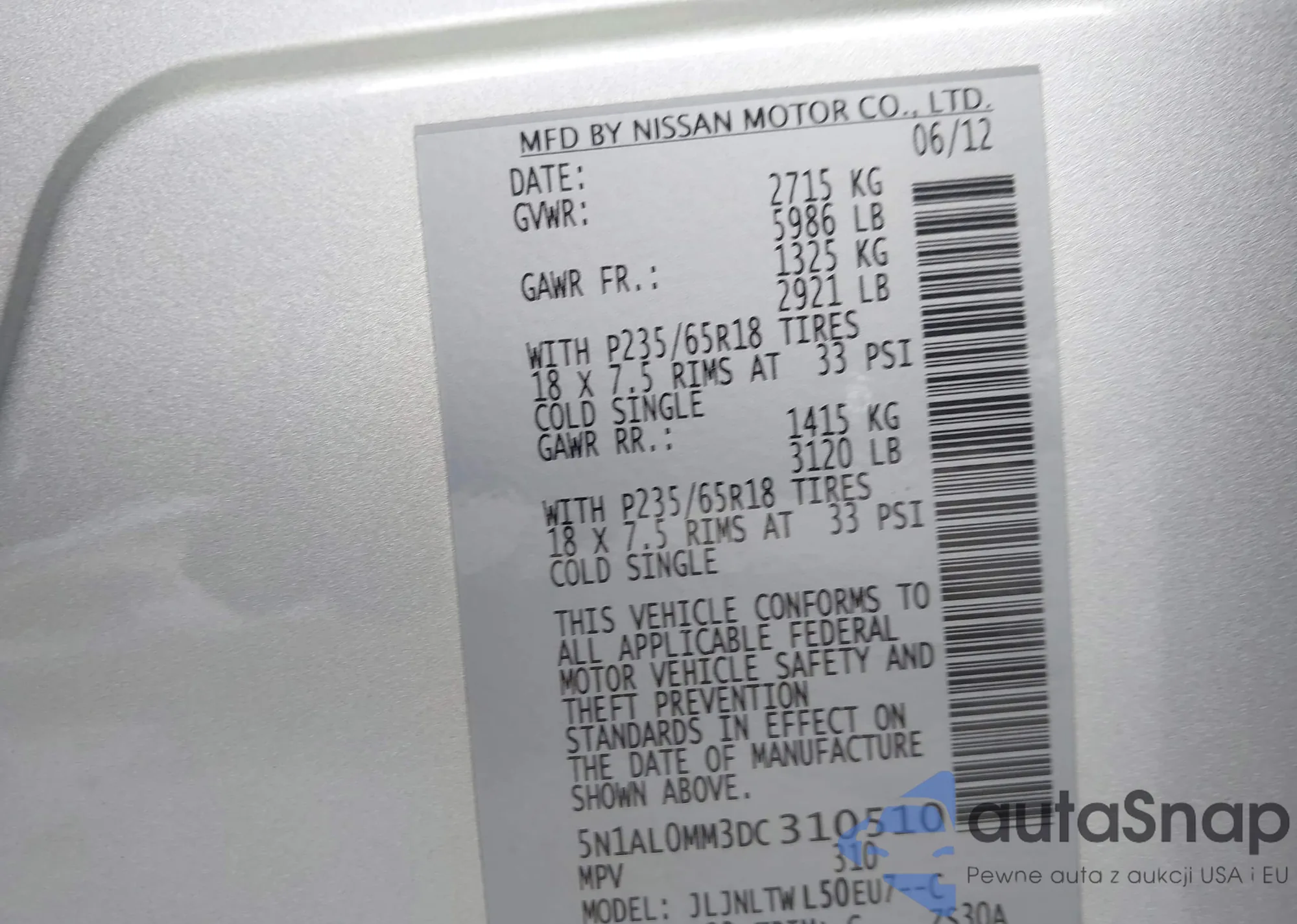 • VIN 5N1AL0MN6DC331859