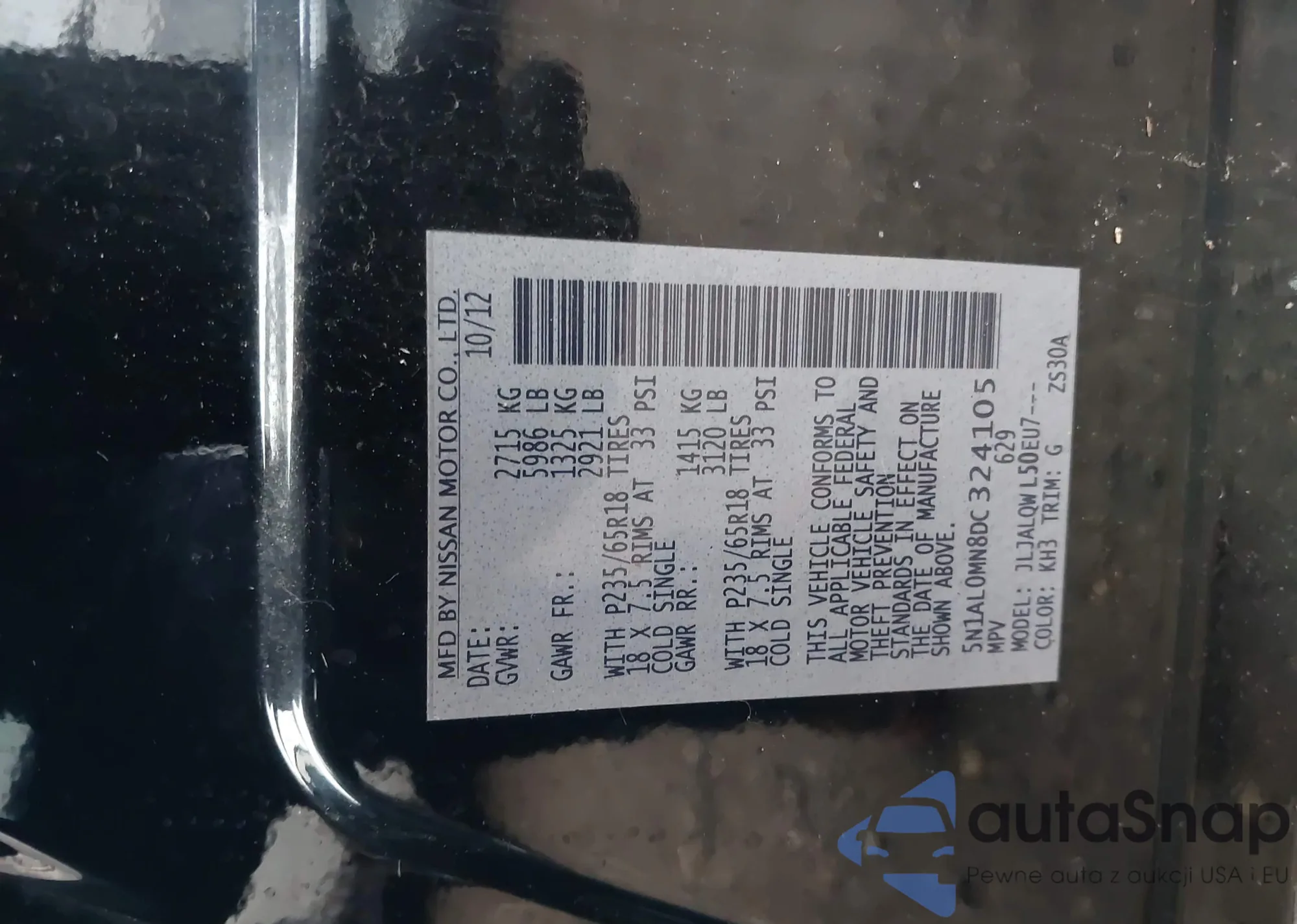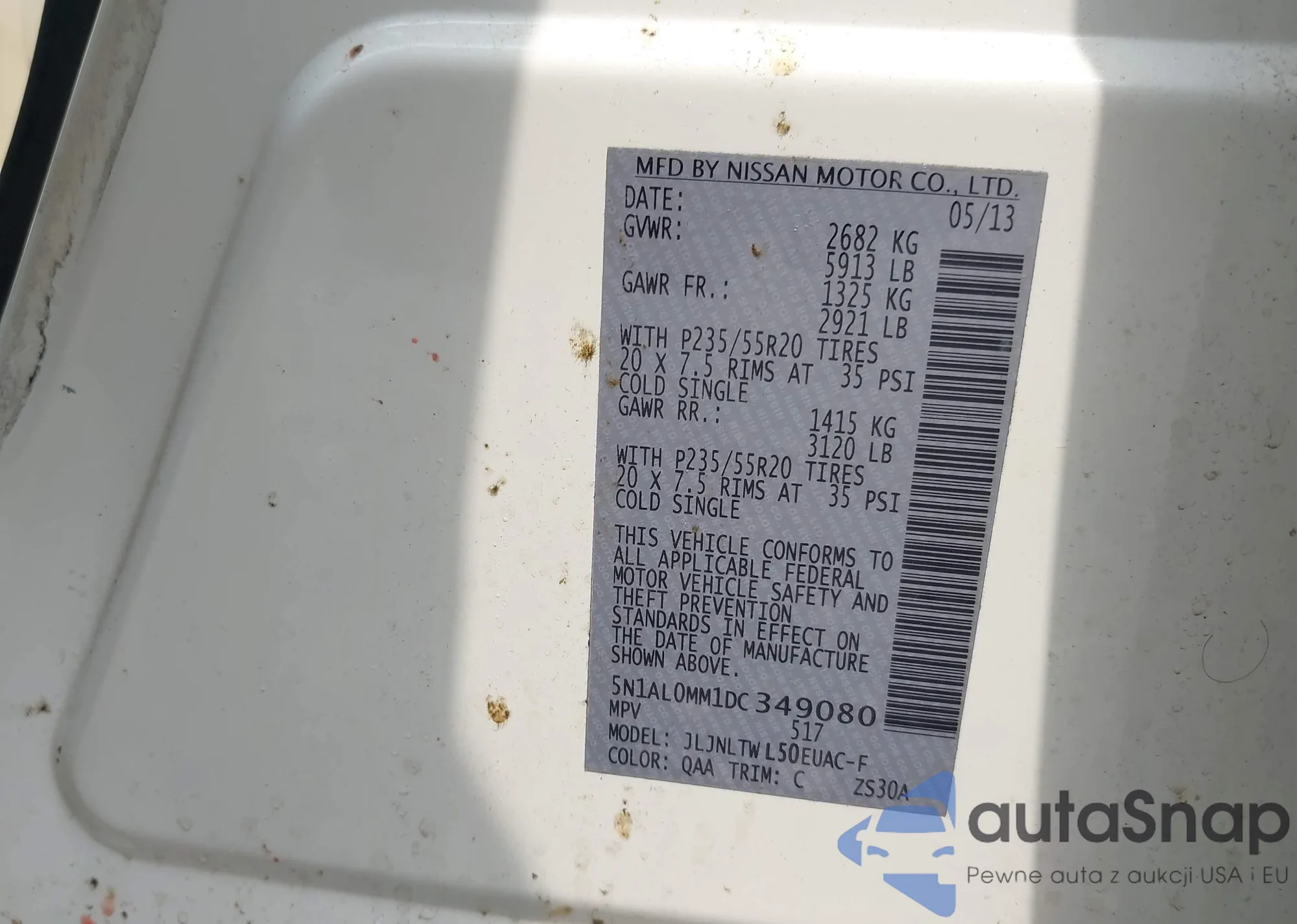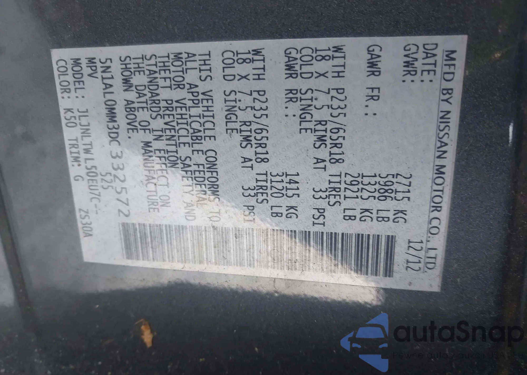 • VIN 5N1AL0MN7DC352459
