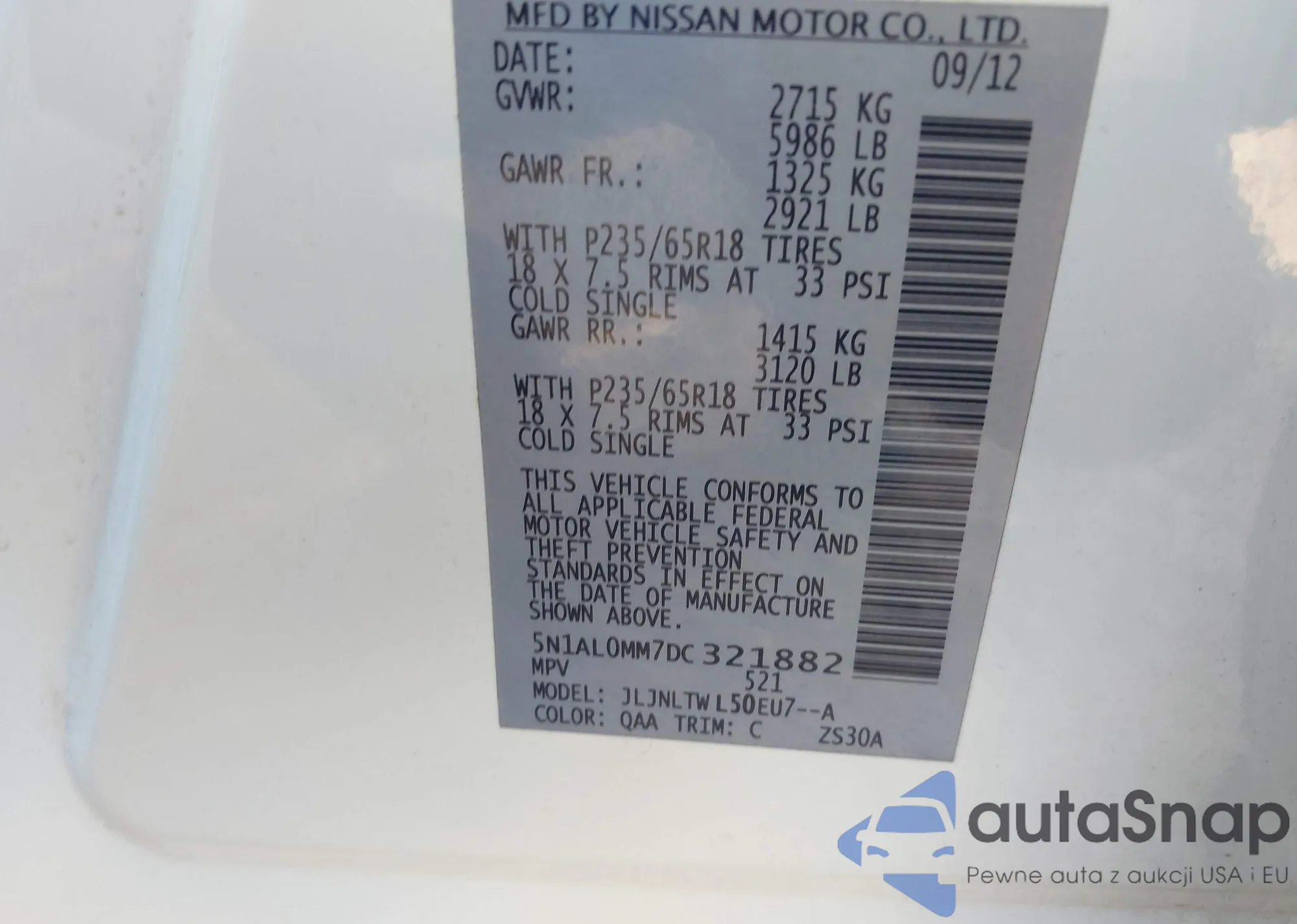 • VIN 5N1AL0MM7DC321882