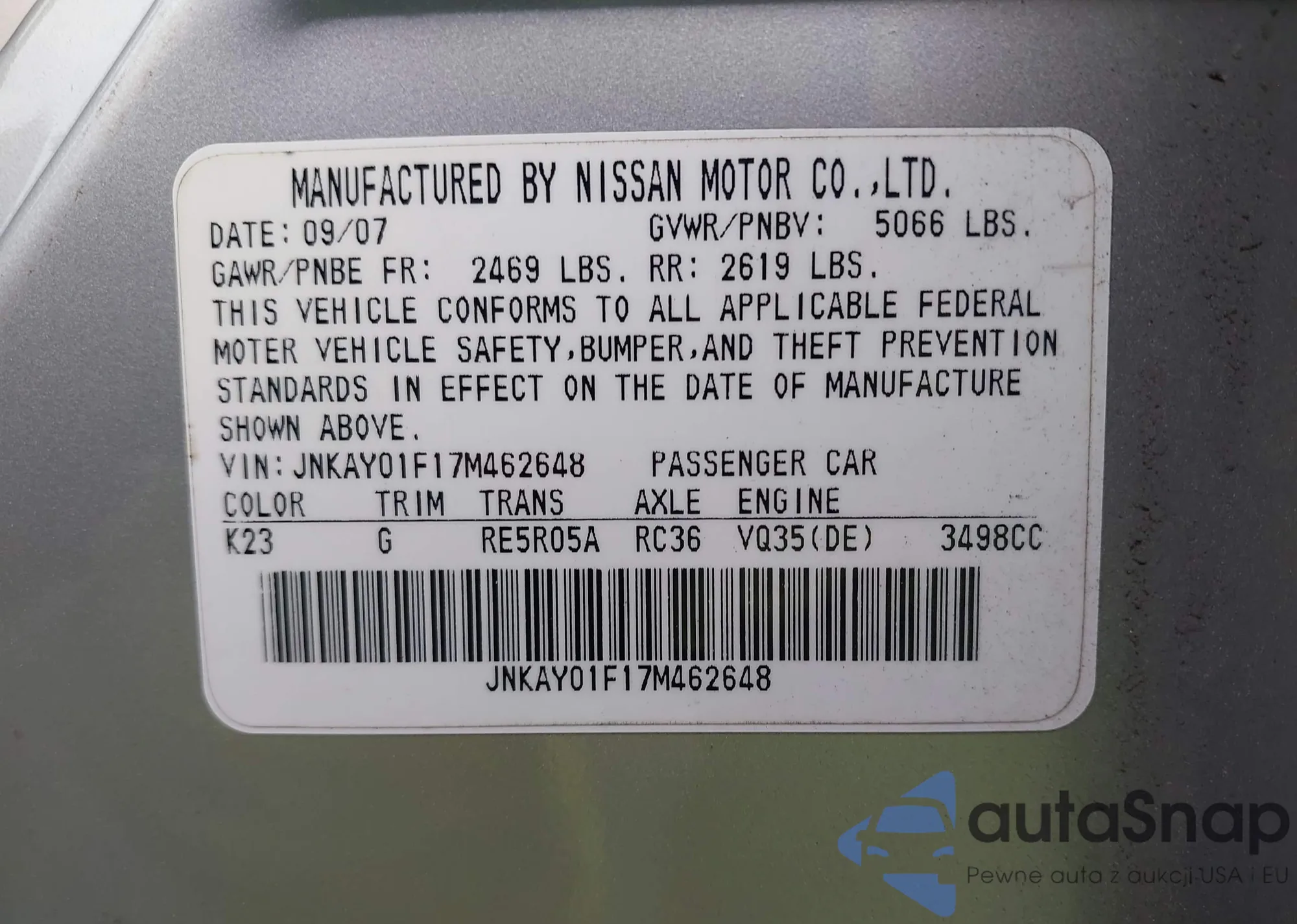 • VIN JNKAY01F87M452103