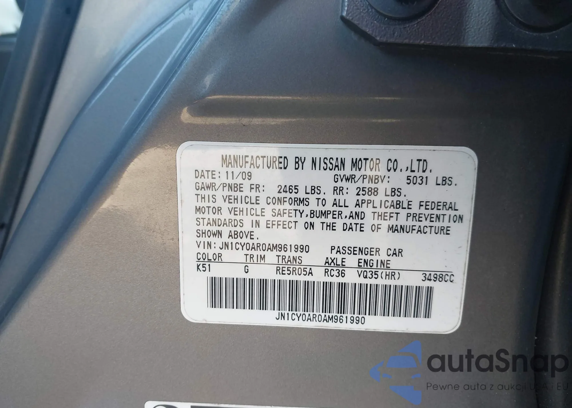 LOT: 44211448 VIN: JN1CY0AR0AM961990