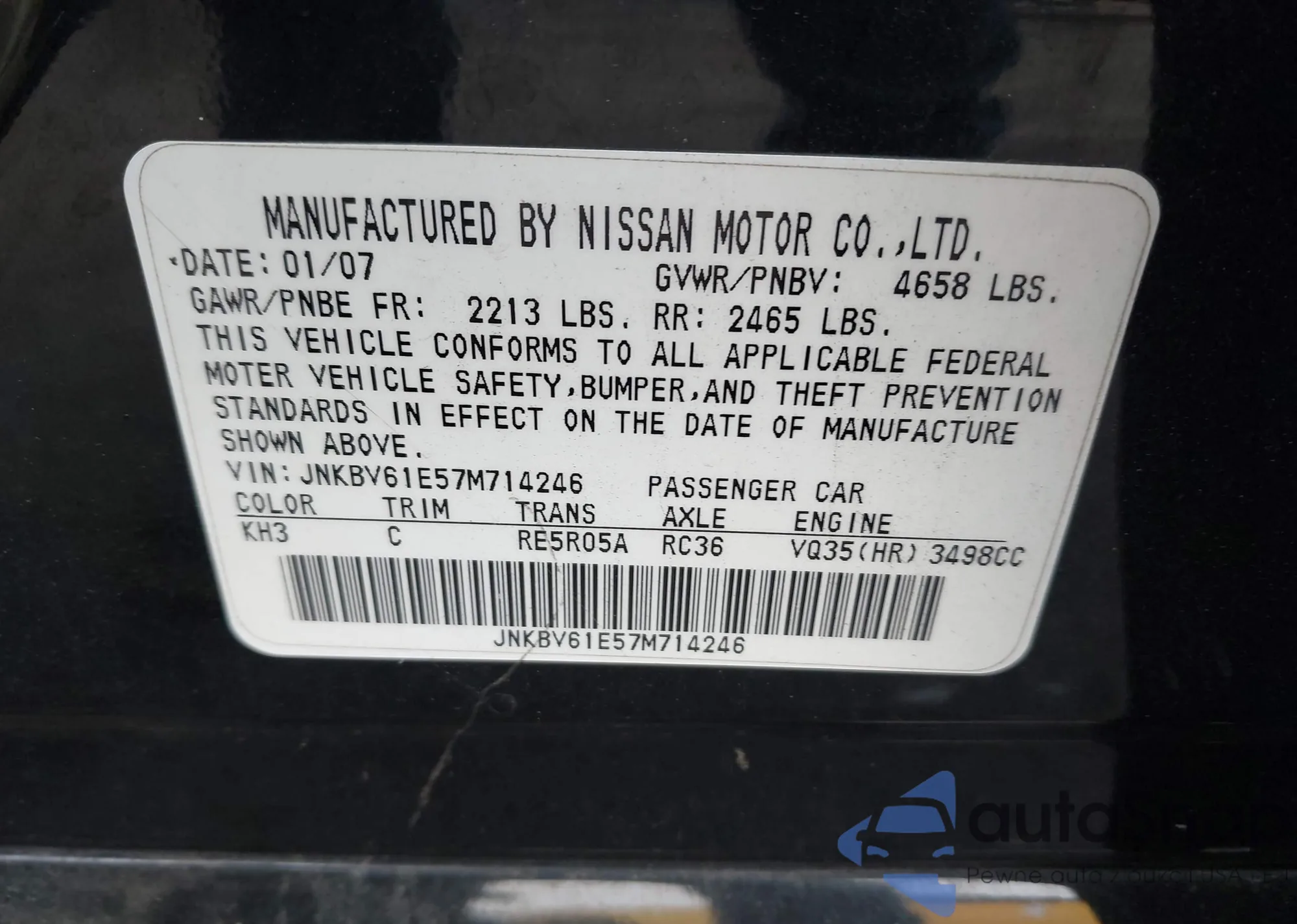 LOT: 43811345 VIN: JNKBV61E57M714246