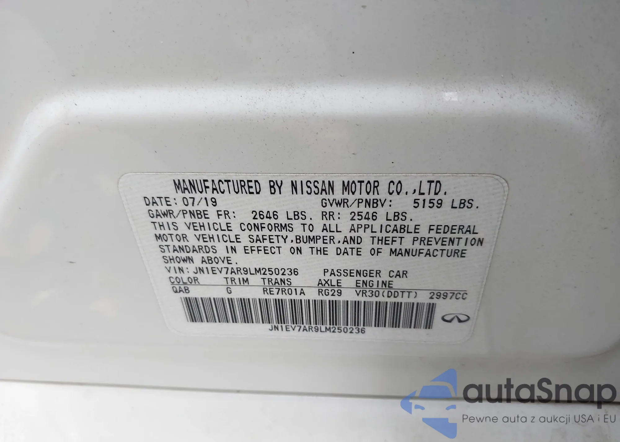 LOT: 91831345 VIN: JN1EV7AP8LM204654