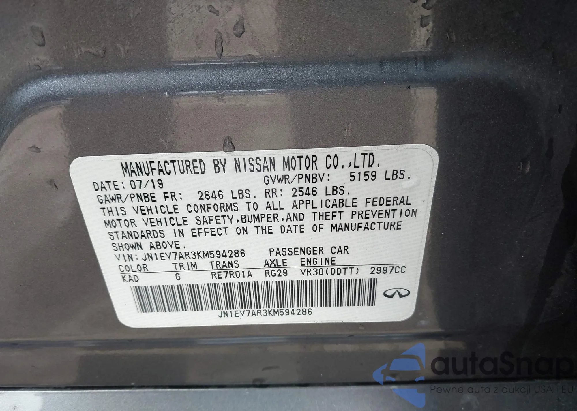 LOT: 91046015 VIN: JN1EV7ARXKM557655