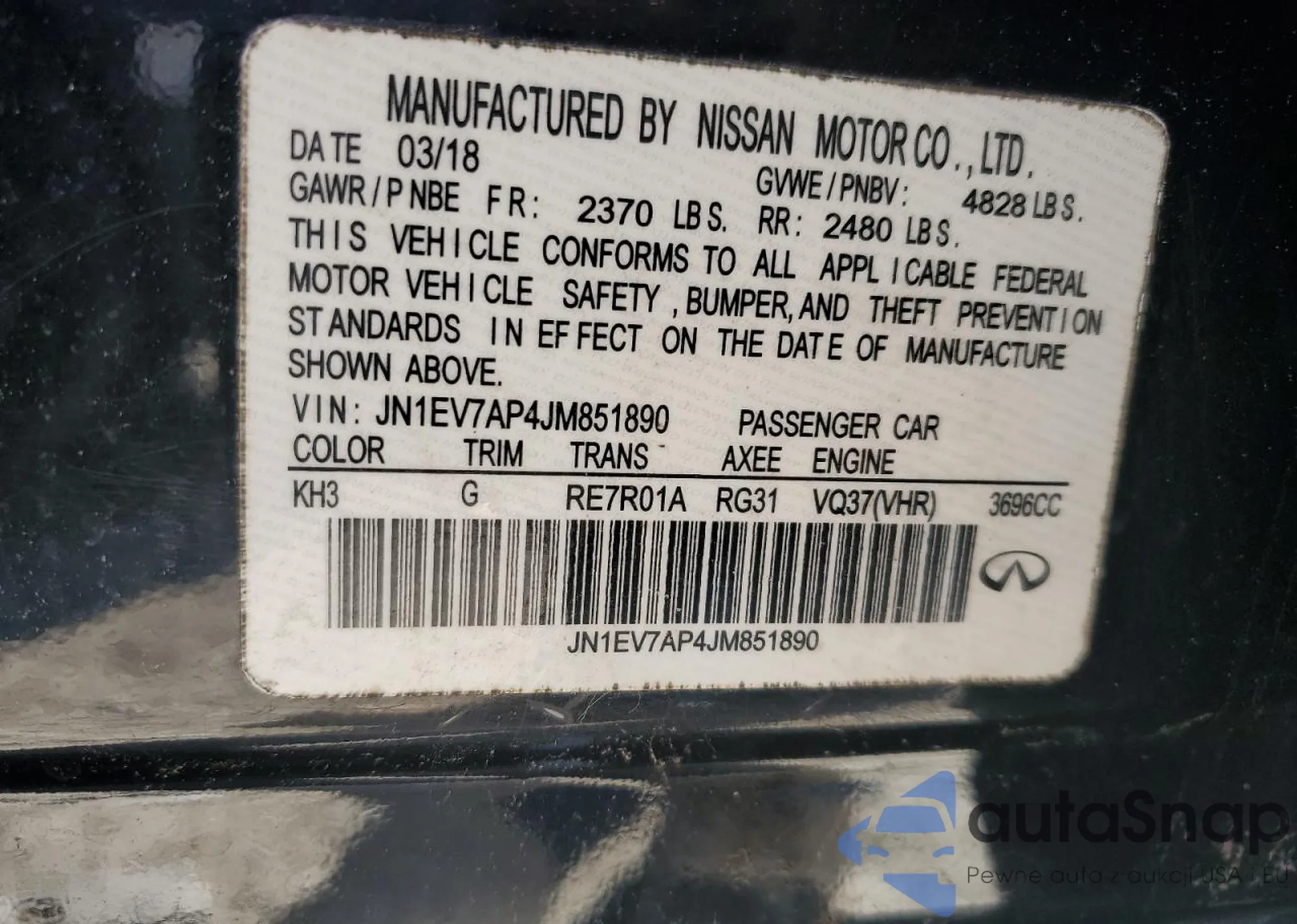 LOT: 91653435 VIN: JN1EV7AP4JM363720