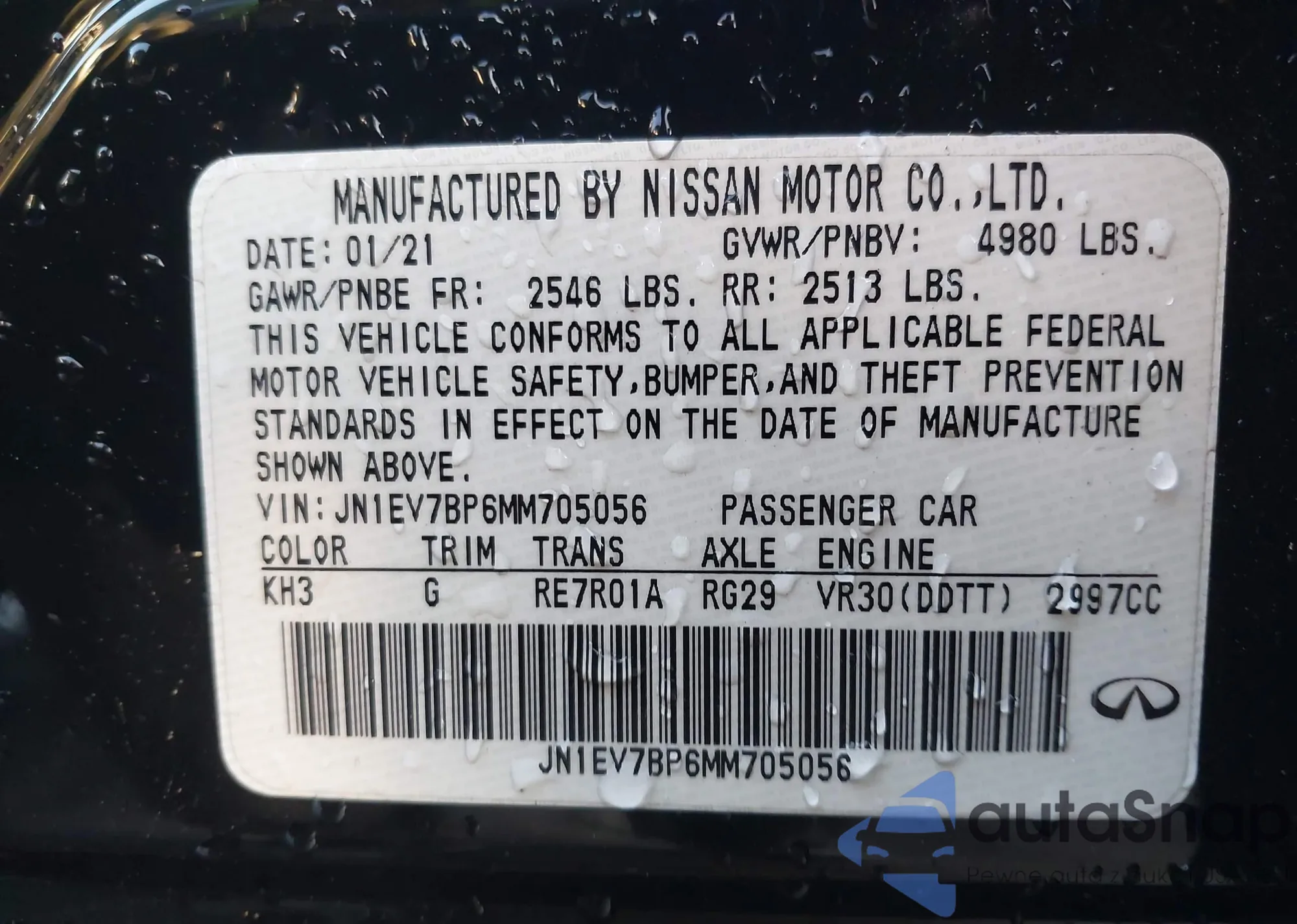 LOT: 44090137 VIN: JN1EV7BP6MM705056