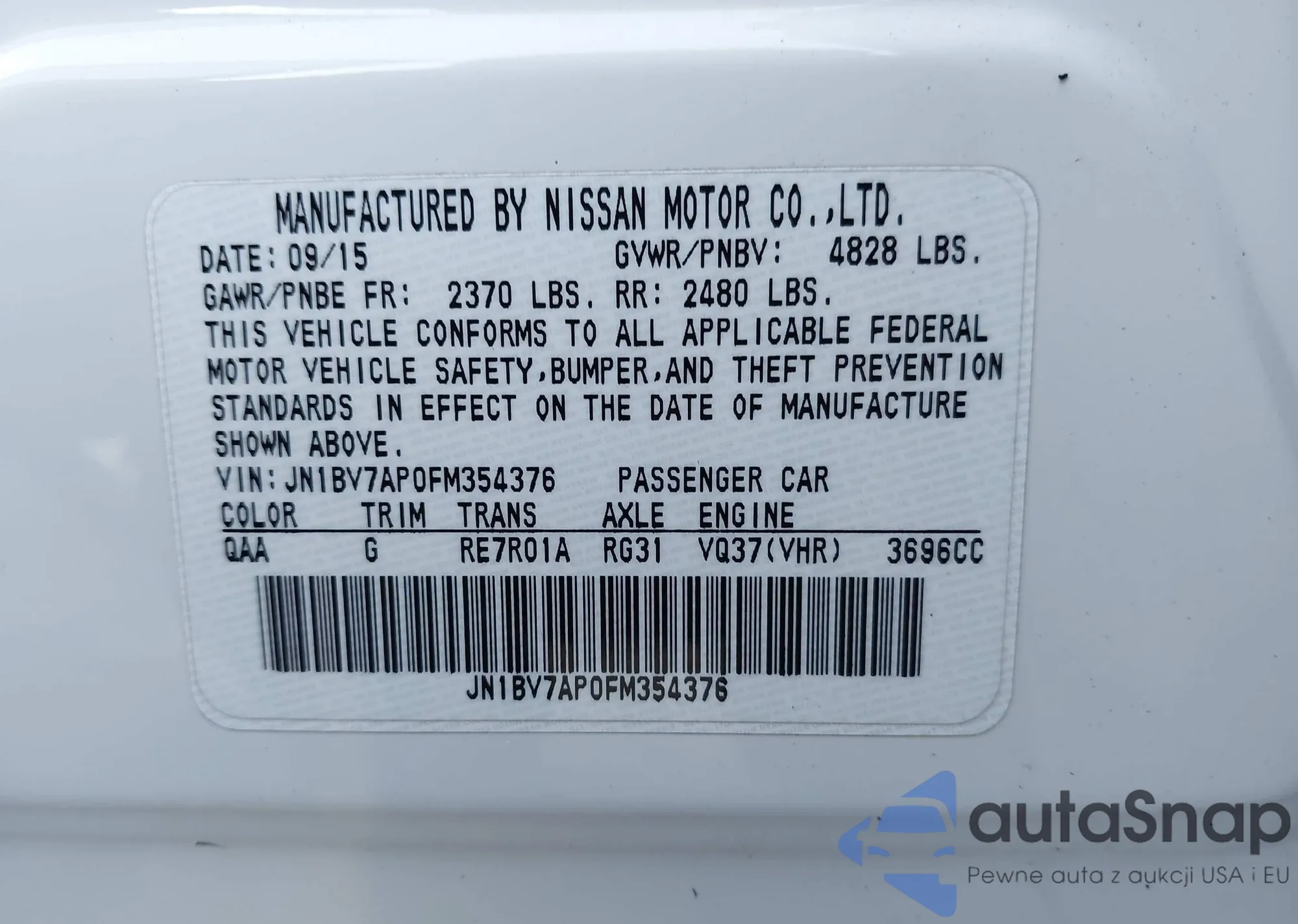 • VIN JN1BV7AP0FM354376