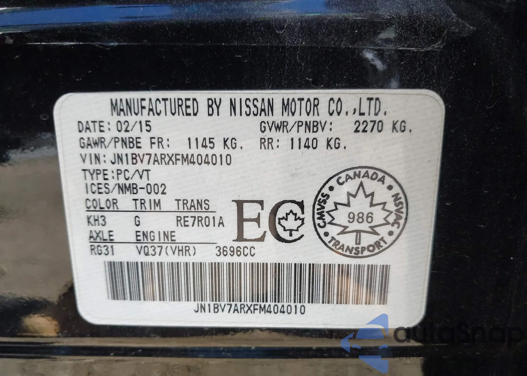 LOT: 41911324 VIN: JN1BV7ARXFM404010