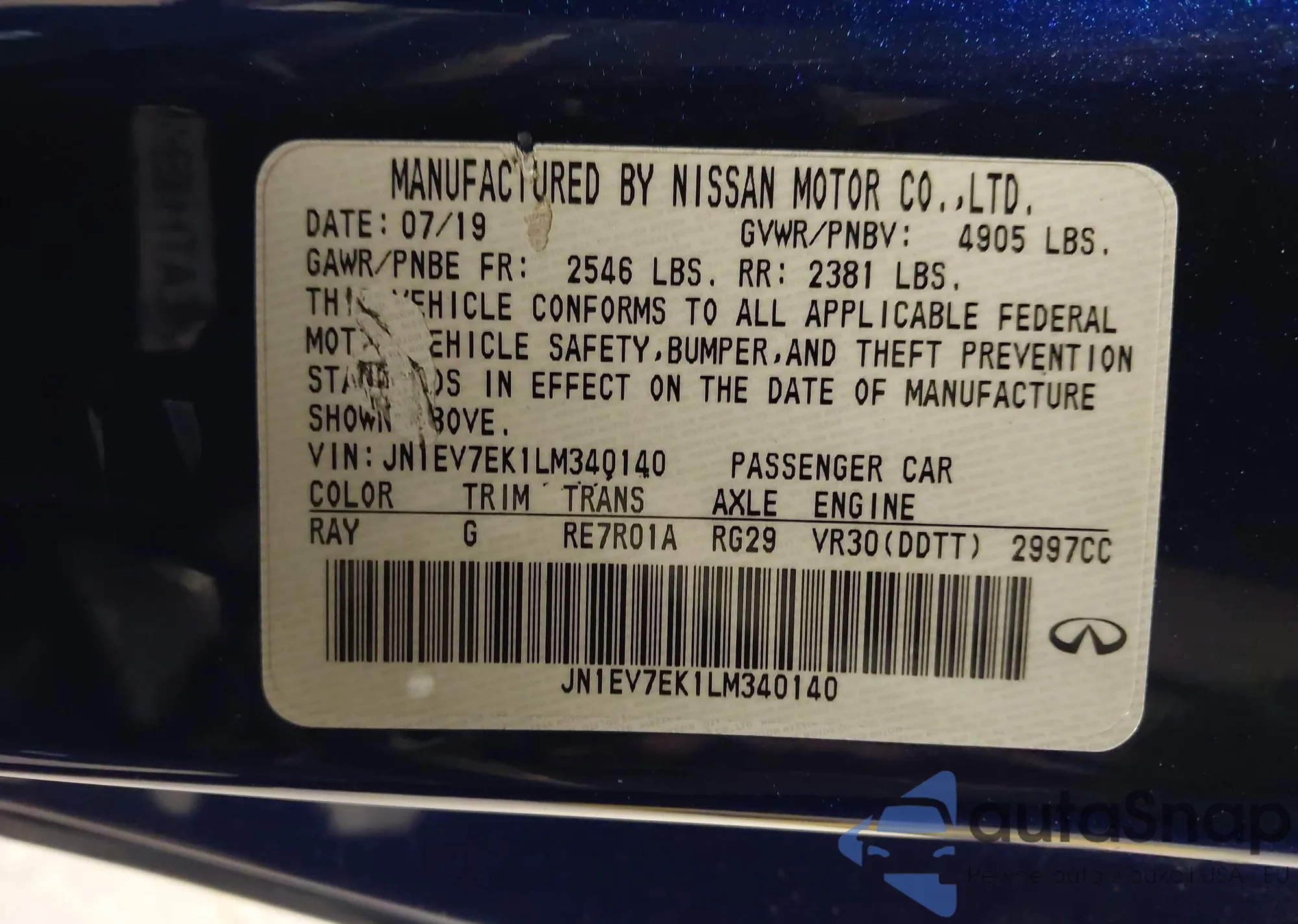 LOT: 44158860 VIN: JN1EV7EL5HM550367