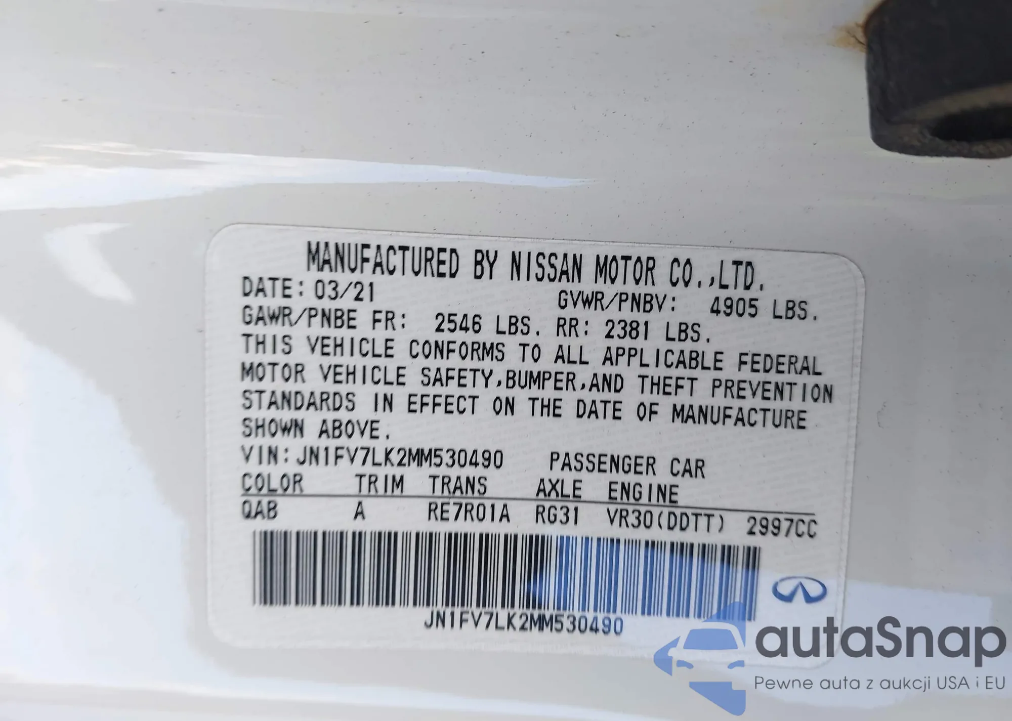 LOT: 43354544 VIN: JN1EV7EK7JM342536