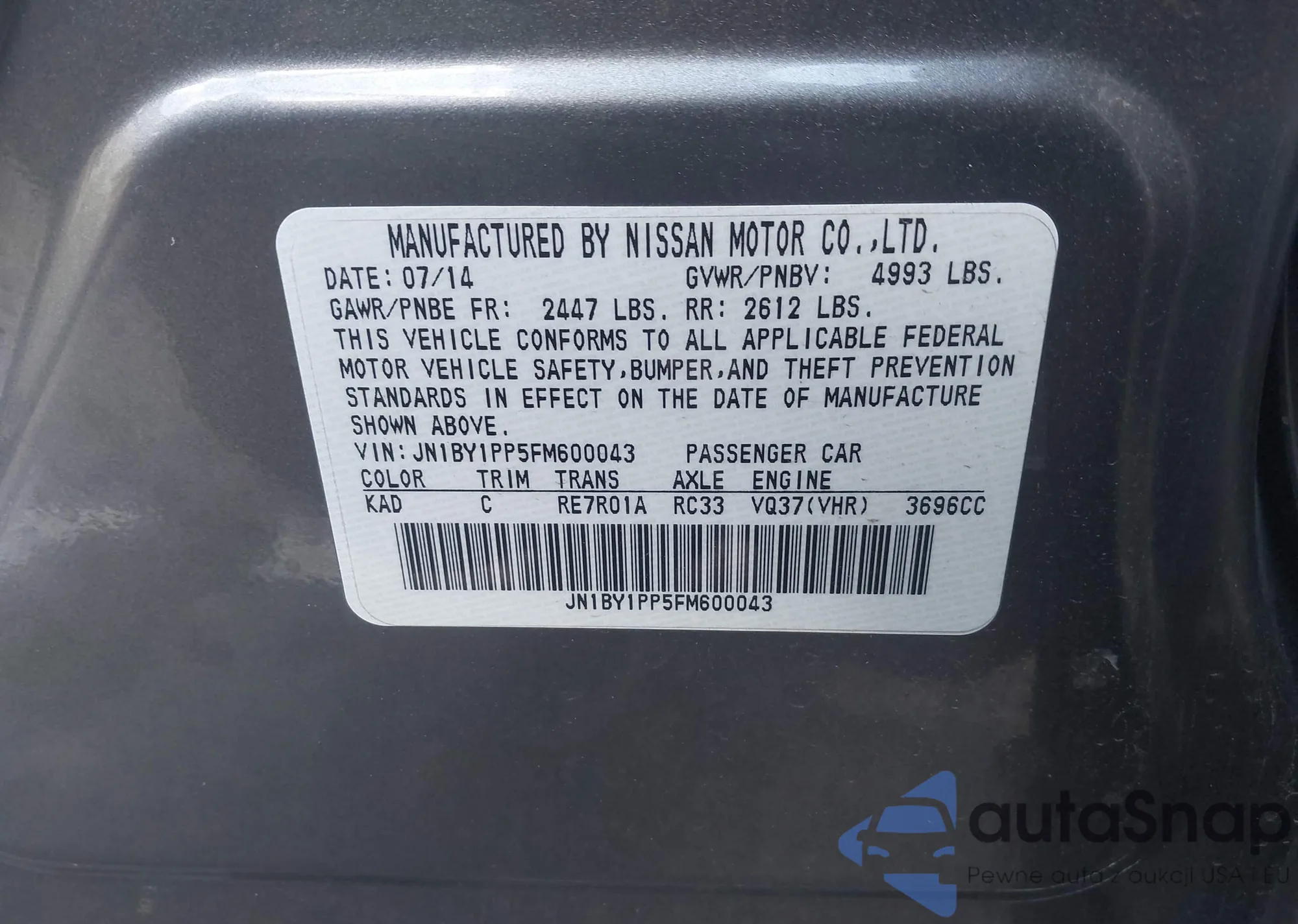 LOT: 44313358 VIN: JN1BY1PP5FM600043
