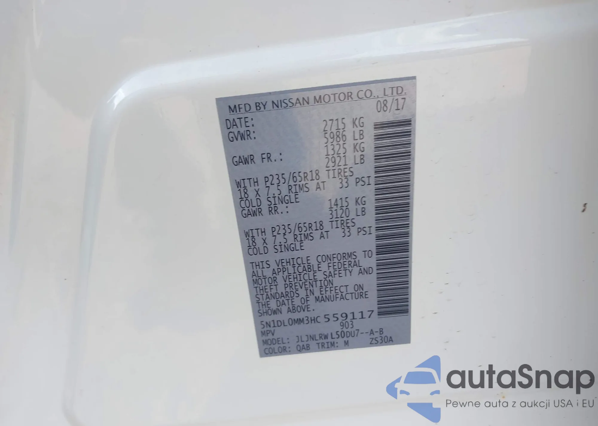 • VIN 5N1DL0MM3HC559117