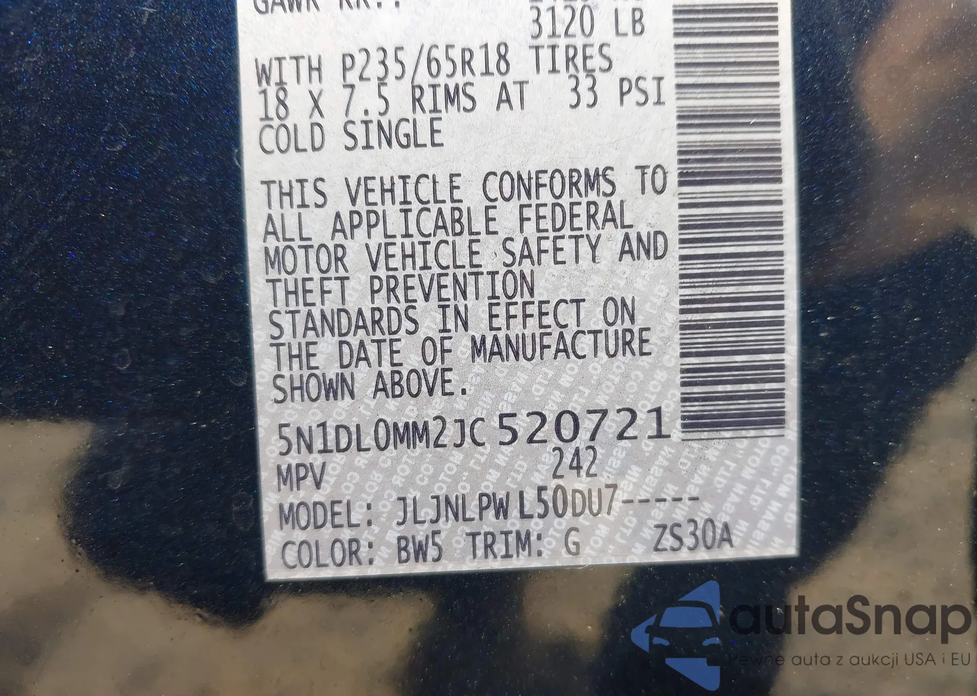 • VIN 5N1DL0MM2JC520721