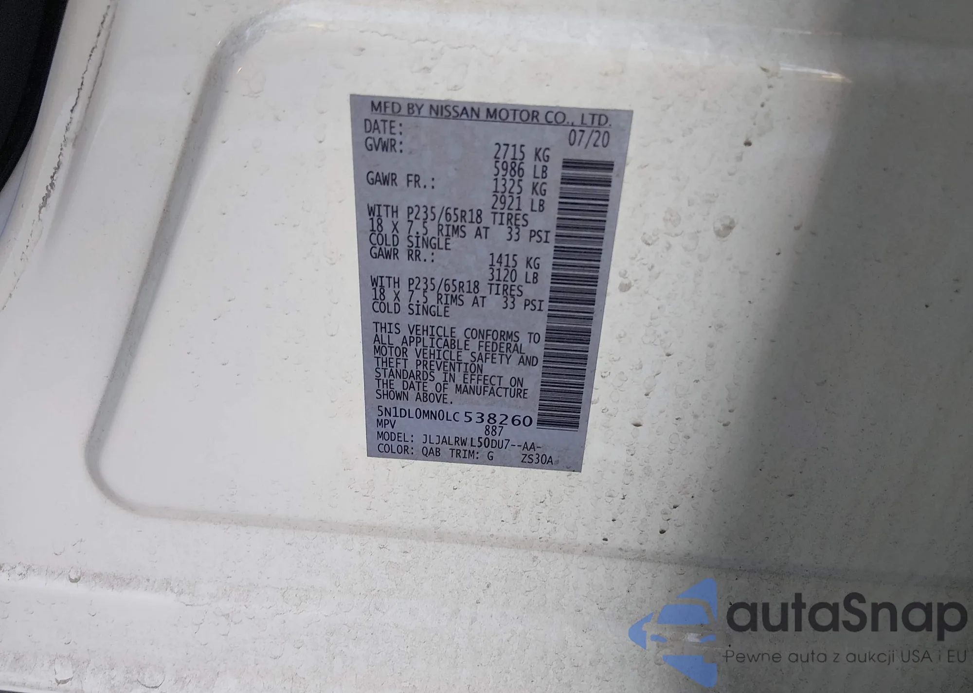 LOT: 44584699 VIN: 5N1DL0MN0LC538260