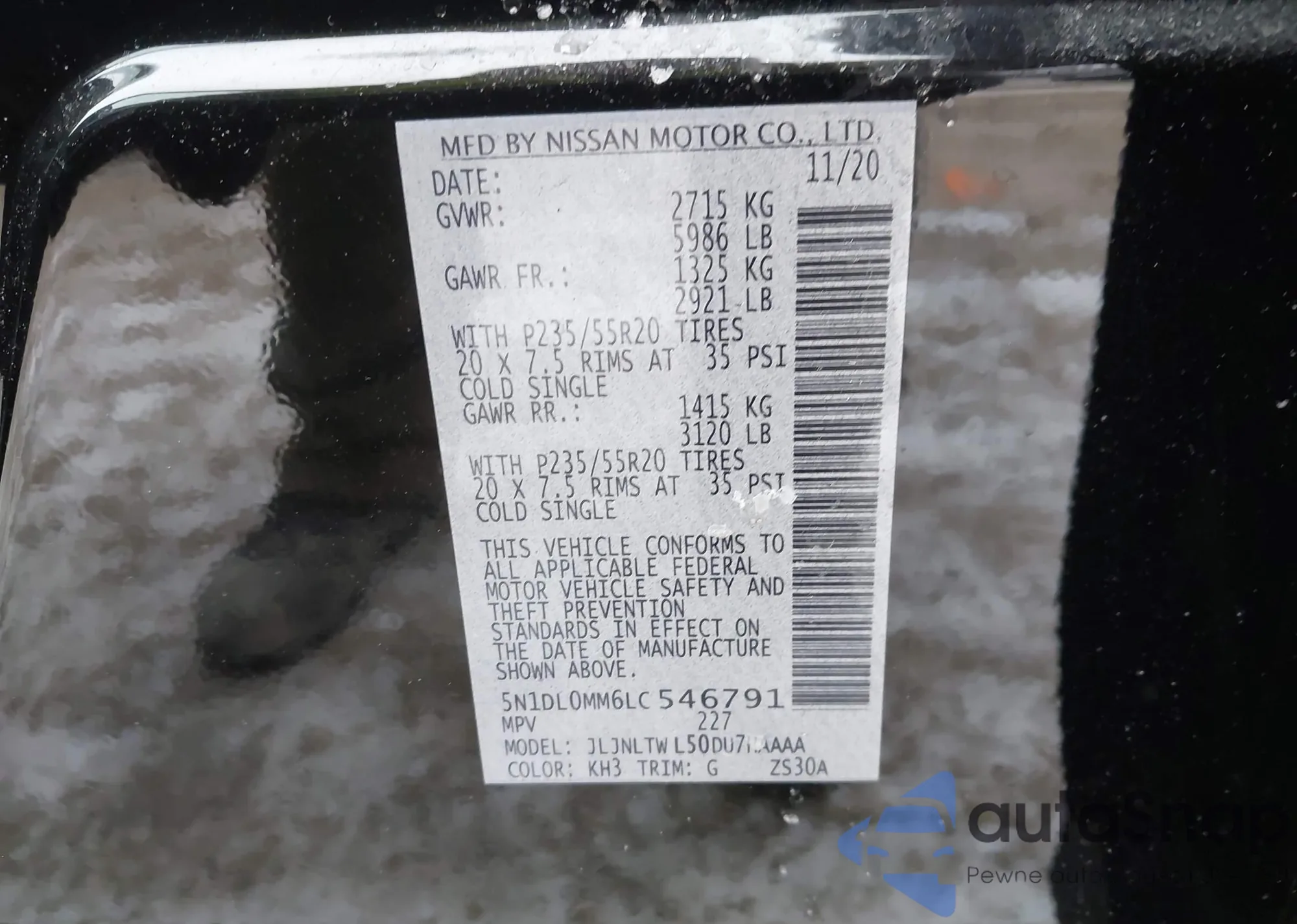 • VIN 5N1DL0MM1LC520972