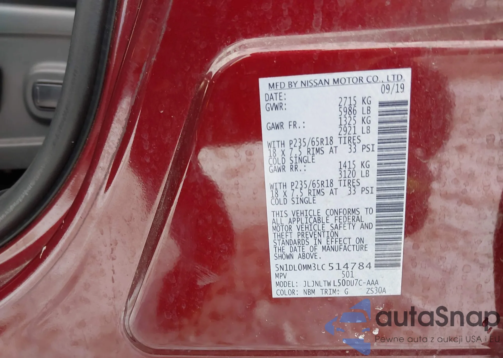 • VIN 5N1DL0MM3LC514784