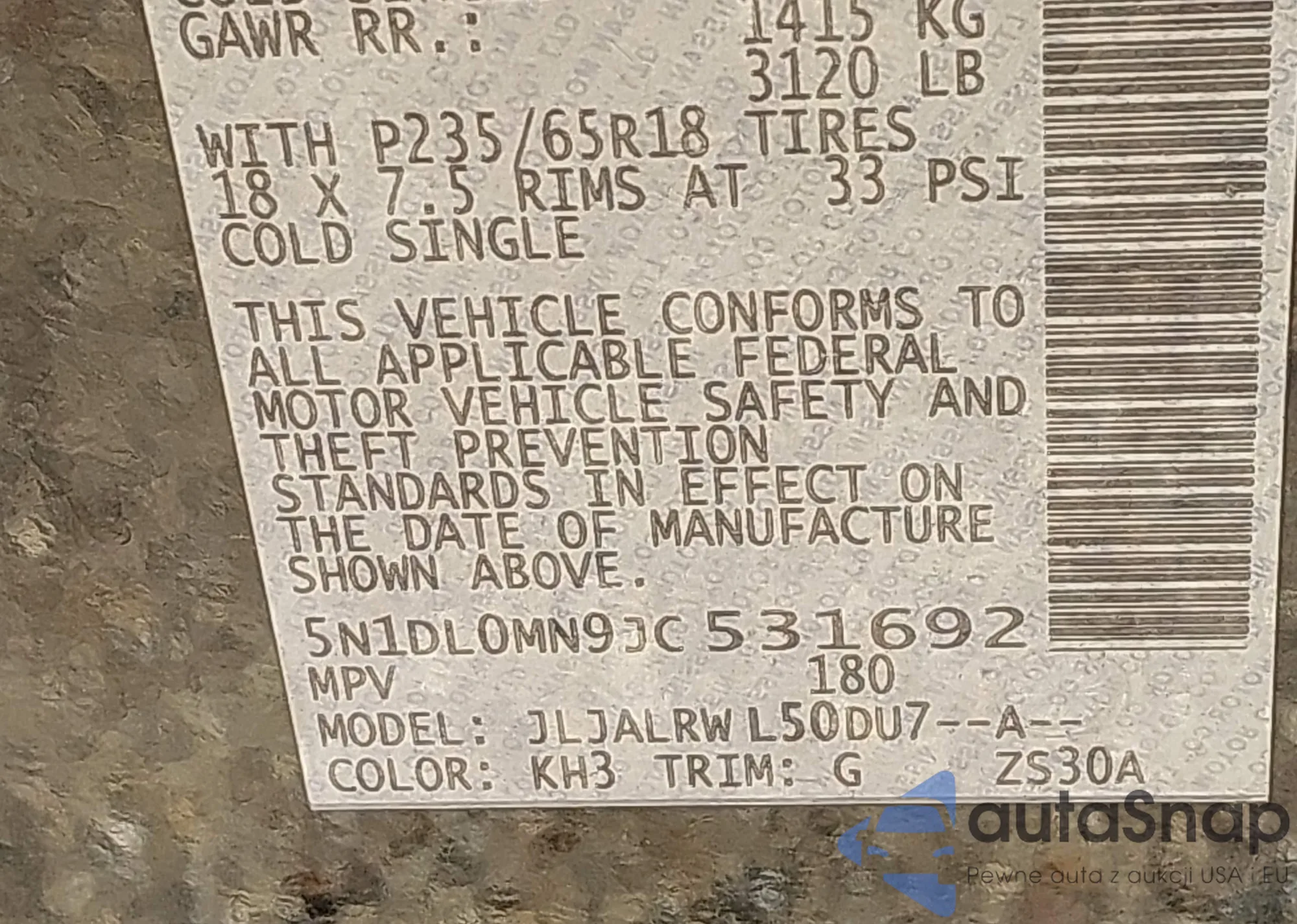 • VIN 5N1DL0MM8JC530122
