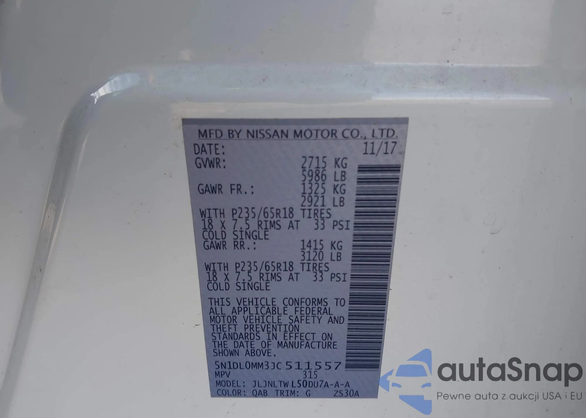 • VIN 5N1DL0MM3JC511557
