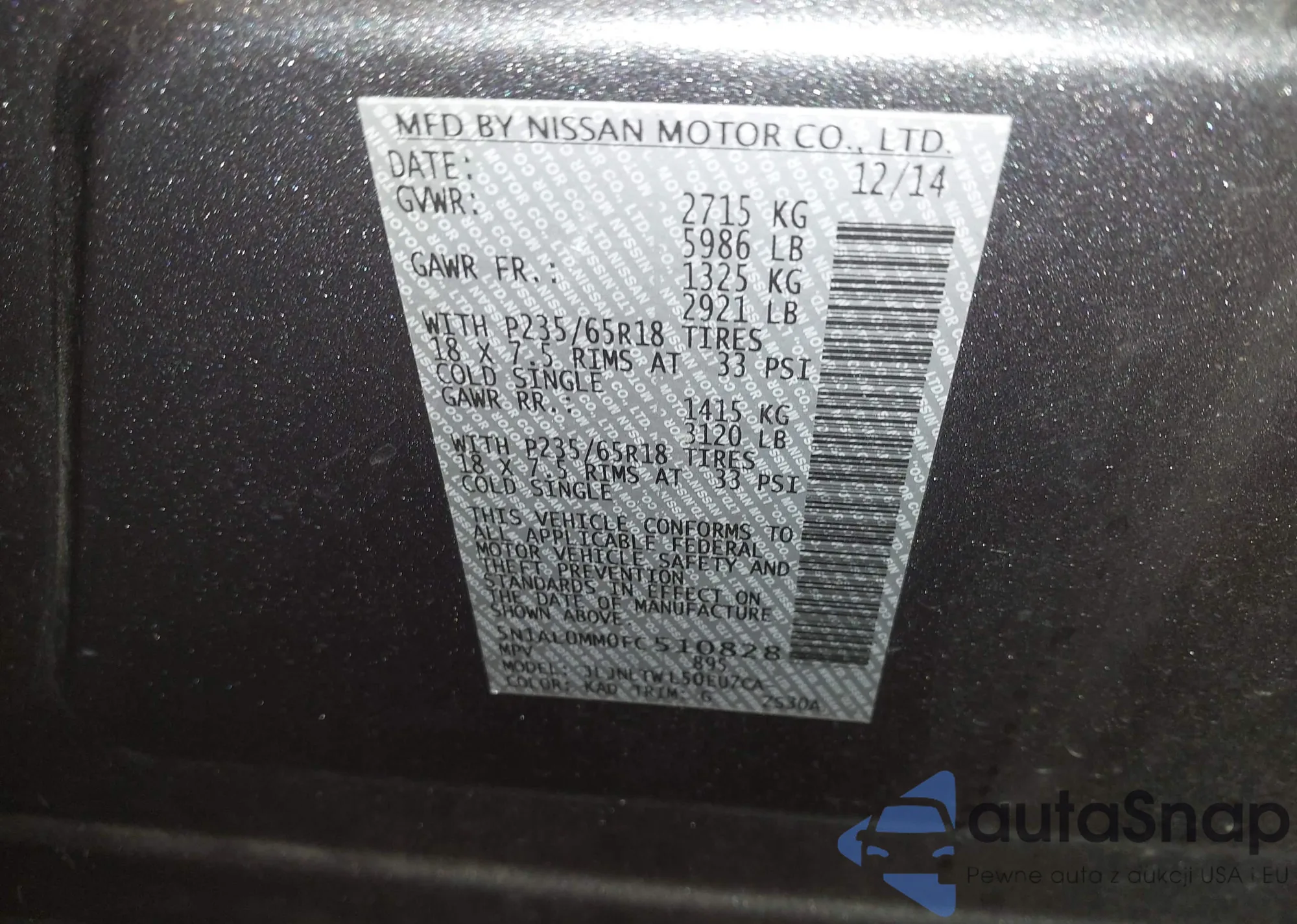 • VIN 5N1AL0MM0FC510828