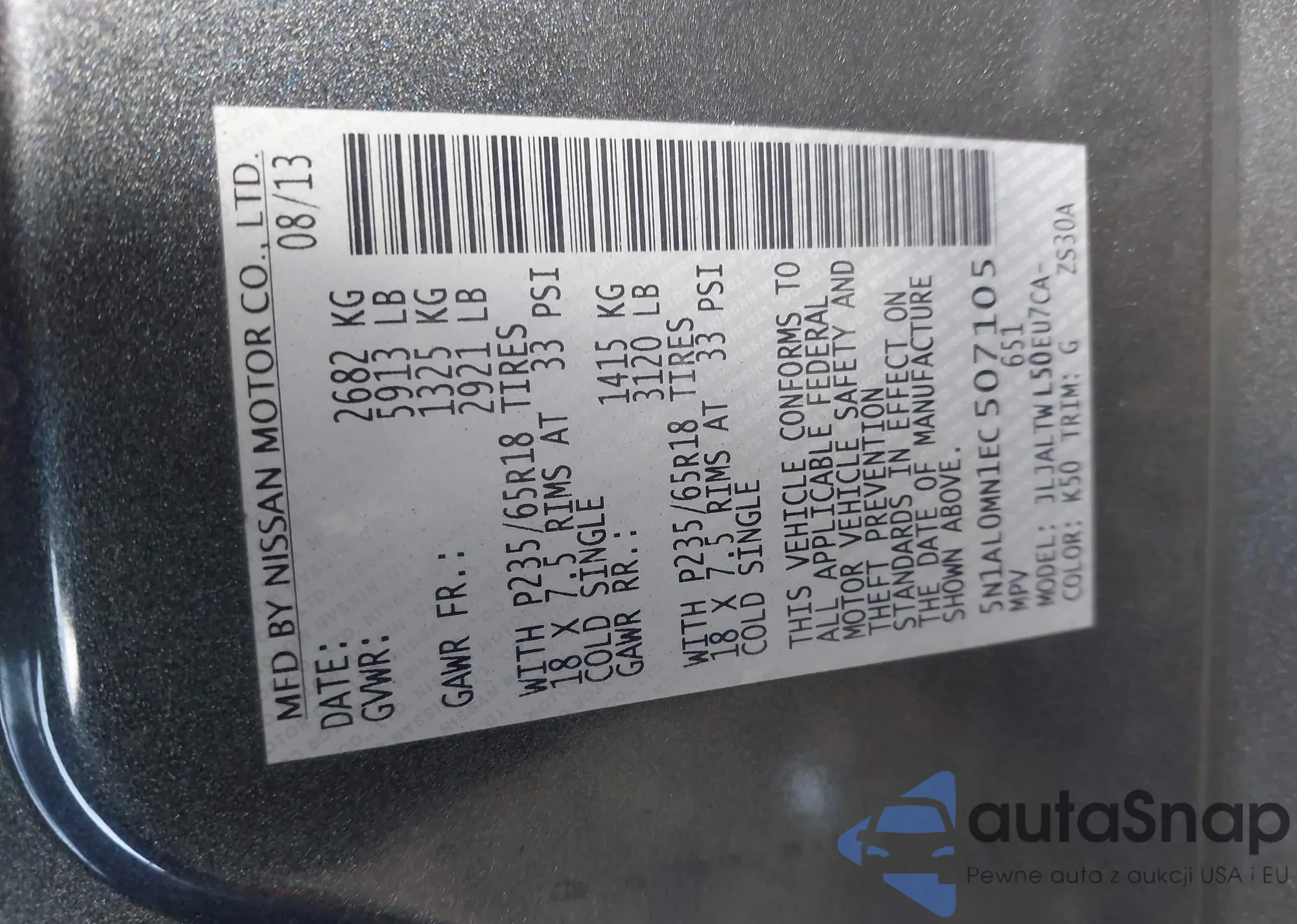 • VIN 5N1AL0MN1EC507105