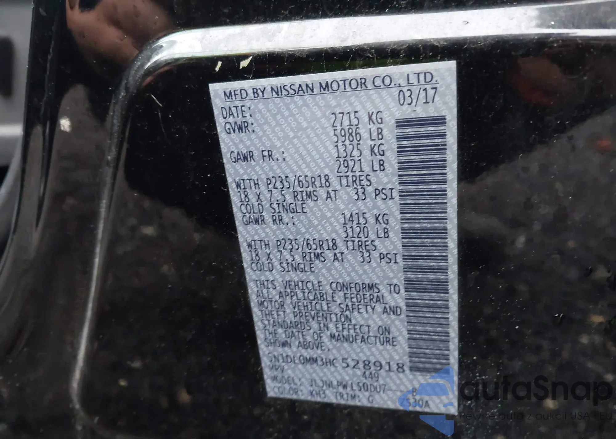 • VIN 5N1DL0MM3HC528918