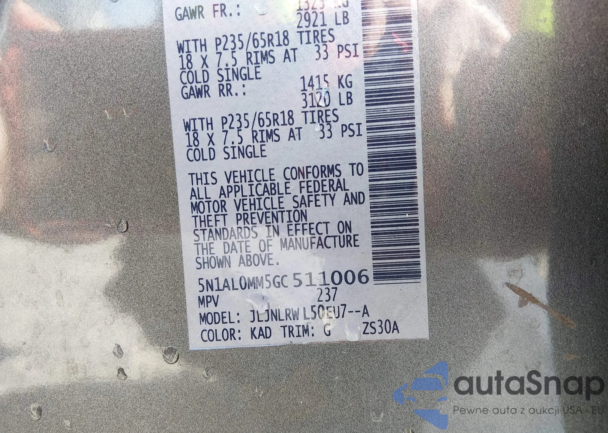 • VIN 5N1AL0MM5GC511006