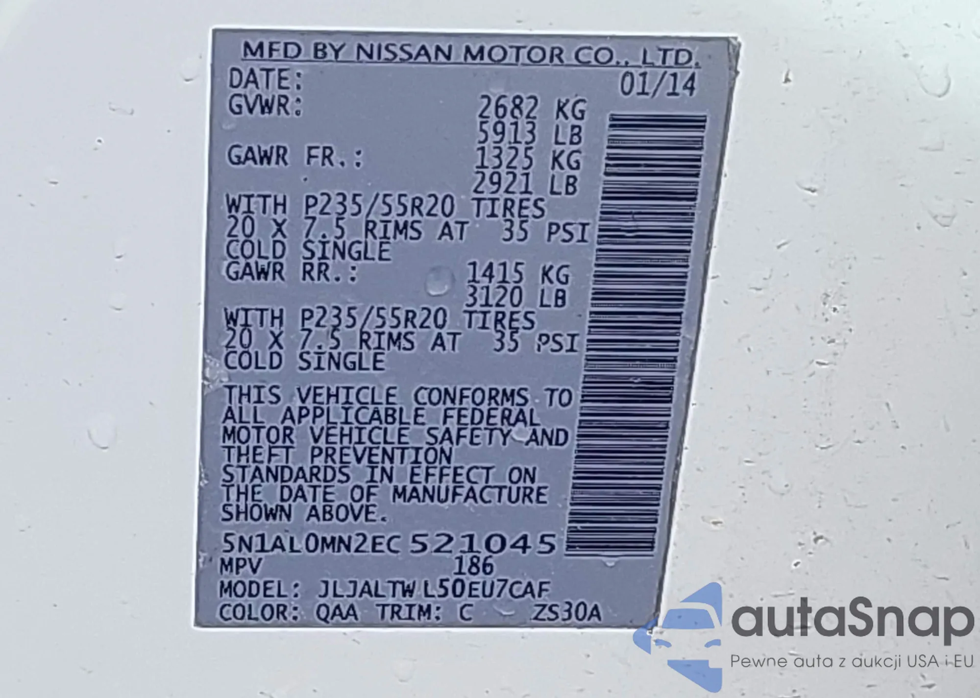 • VIN 5N1AL0MN2EC521045