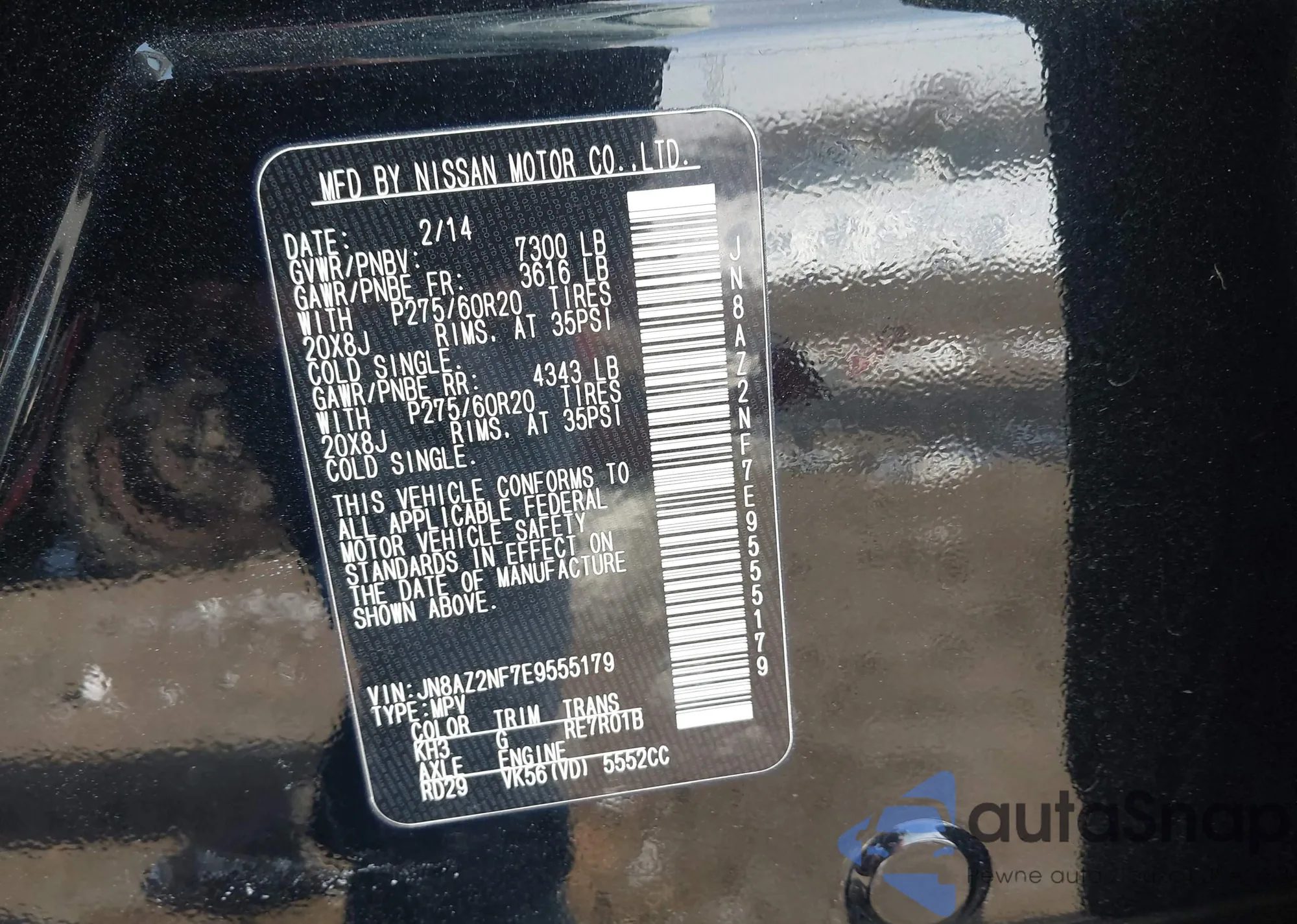 • VIN JN8AZ2NF7E9555179