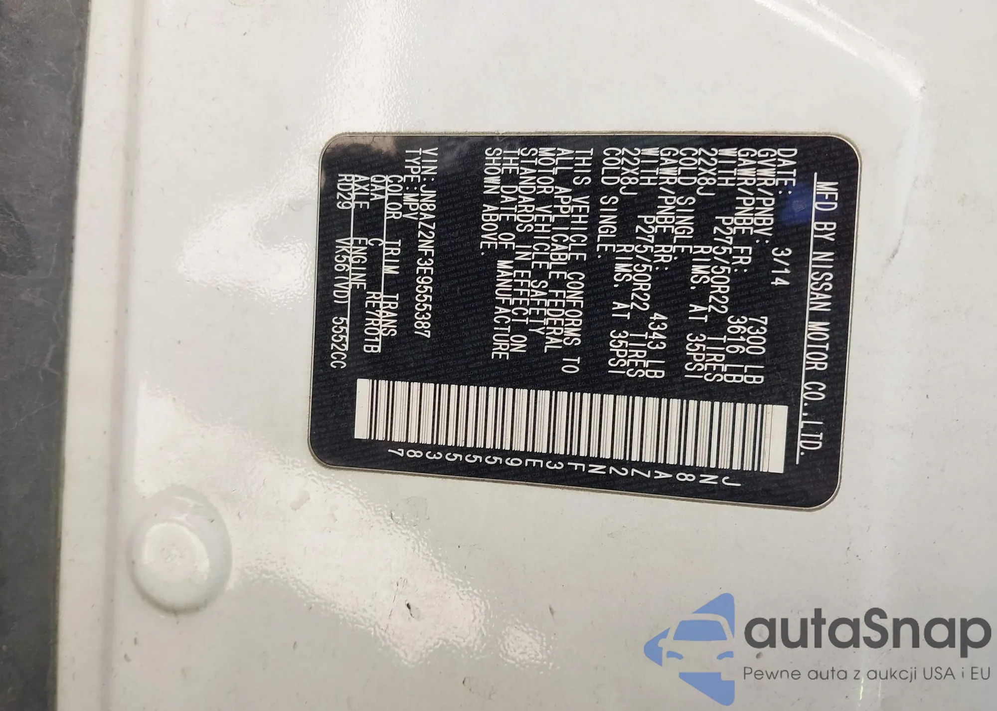 • VIN JN8AZ2NF3E9555387