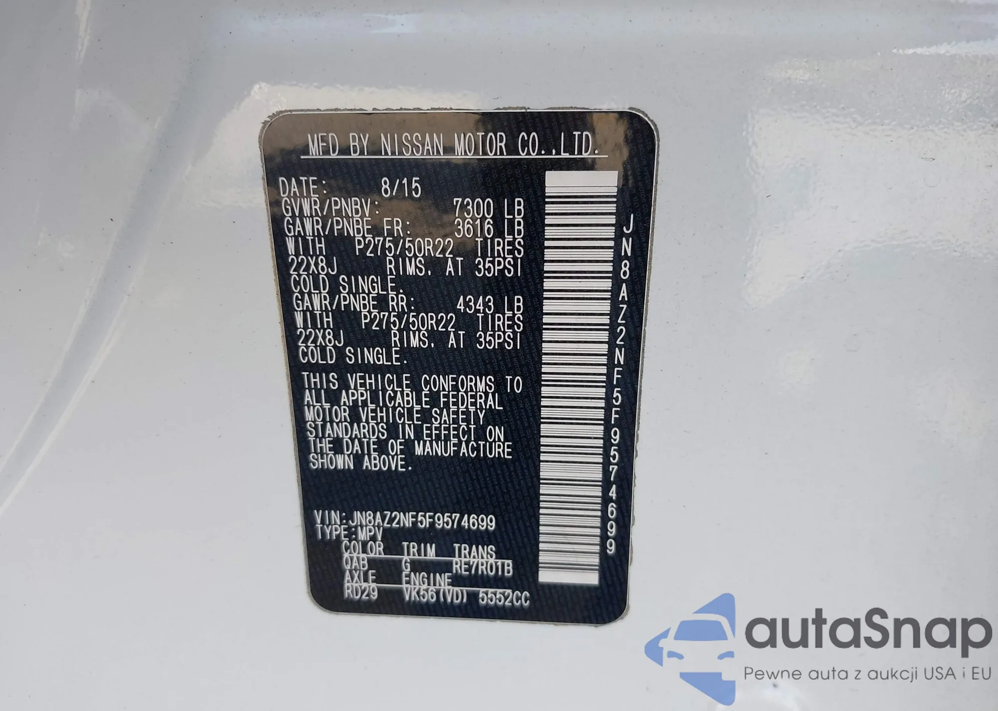 • VIN JN8AZ2NF5F9574699