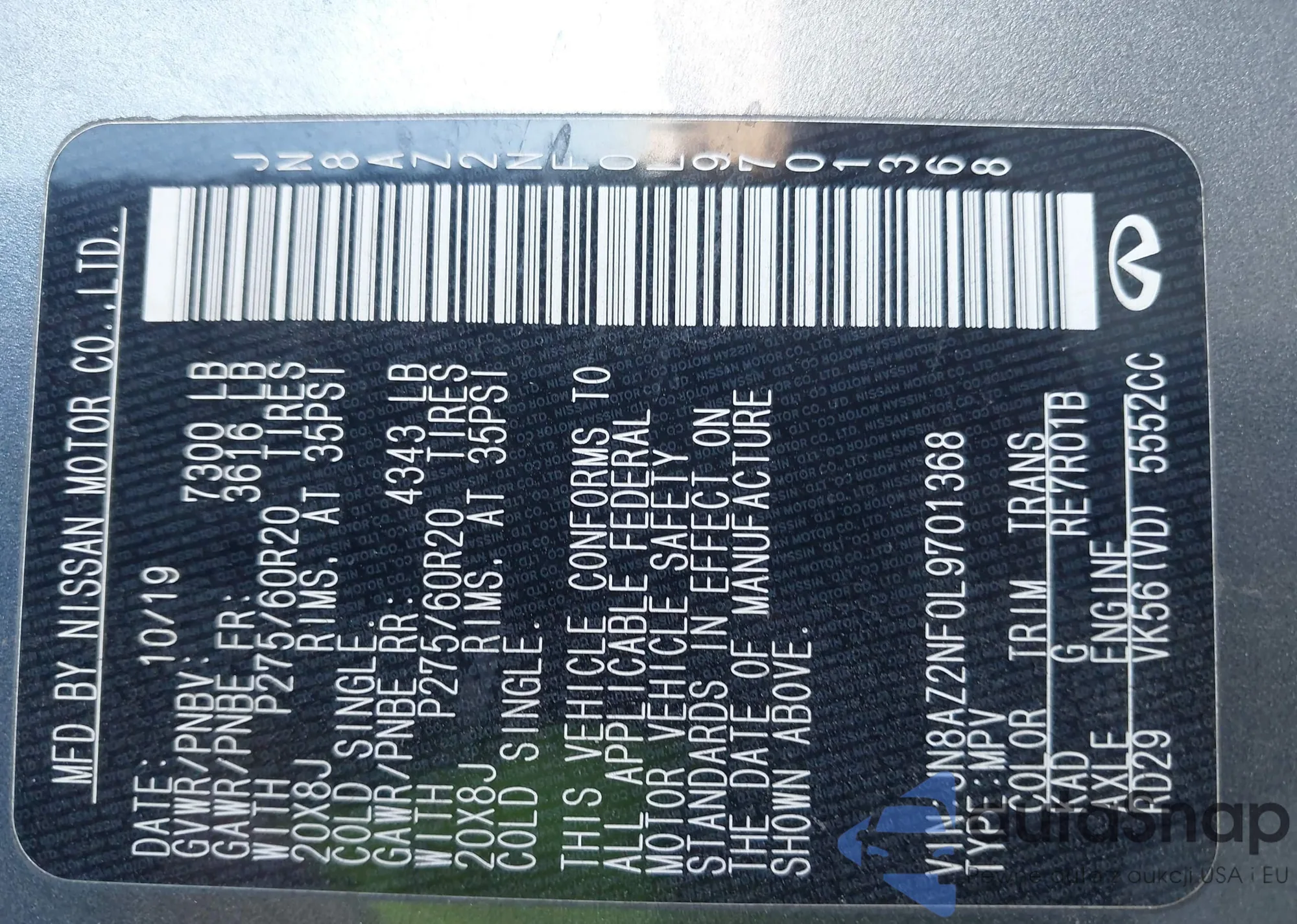 • VIN JN8AZ2NF0L9701368